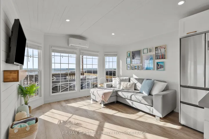 Welcome to 6 Water’s Edge! Located within the highly sought-after Sherkston Shores resort community, this incredible lakefront cottage can be enjoyed from May 1 to November 1 each year, with a yearly resort fee of just over $19,000. Whether you’re looking for a personal getaway or a smart investment, this property offers AMAZING INCOME POTENTIAL OF $3,000+ PER WEEK!This beautifully renovated cottage is truly move-in ready and perfect for anyone looking to enjoy effortless waterfront living. Offering 2 bedrooms, a fully updated bathroom, and a bright, open-concept kitchen/living/dining area, it’s the kind of place where the whole family will love spending time together. The kitchen features an island, stainless-steel appliances, a modern hood fan, and a sleek black sink and faucet. The dining area-complete with a bar fridge-lets you enjoy meals al fresco by the lake or inside in the comfort of a bright, airy space.The living room is finished with stylish shiplap and a floating wood mantle, creating a relaxed, modern cottage vibe. After a sun-soaked day on the beautiful beach just steps away, unwind under the stars by the stone-paver lakeside fire pit, or take in the expansive water views from the extended back deck. The large covered front deck sets the tone the moment you arrive-welcoming, comfortable, and built for making memories.Located just 90 minutes from Toronto and 20 minutes from Niagara Falls, Sherkston Shores spans 560 acres of stunning grounds with 4 km of sandy beachfront, giving you endless opportunities to explore, relax, and enjoy the outdoors.With features like a furnished interior, mini-split heating/cooling system, open floor plan, walk-in shower, washer/dryer hookups, kitchen island, and of course the premium waterfront site, resort life at The Shores is truly calling.