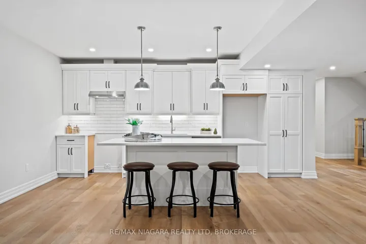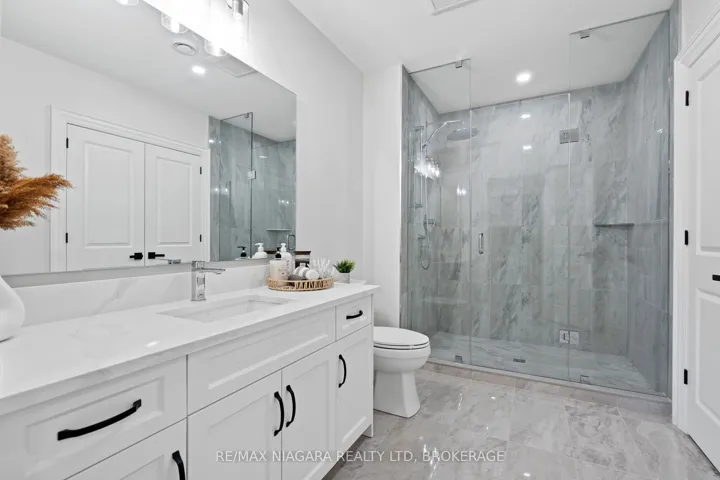 Discover low-maintenance luxury living in this beautifully designed bungalow, perfectly situated between Niagara-on-the-Lake’s vineyards and the amenities of Niagara Falls. This home offers the ideal blend of style, function, and comfort for today’s modern buyer. Step inside to soaring ceilings, elegant panel detailing. The chef-inspired kitchen features quartz countertops, custom built-in cabinetry, and a premium Thermador gas stove, perfect for entertaining. With 5 spacious bedrooms, a bonus room ideal for a home gym or office, and two full kitchens (including one in the finished basement), the layout is ideal for multi-generational living or hosting guests. Relax by one of two gas fireplaces or enjoy the outdoors on the covered patio. Notable Features: Engineered hardwood flooring throughout, Heated floors in all bathrooms, Motorized electric blinds, Second kitchen in basement, AC (2022), HVAC (2022), Roof (2022) In-ground sprinkler system, Double garage + driveway parking