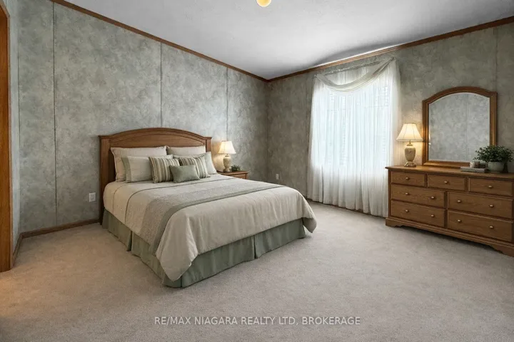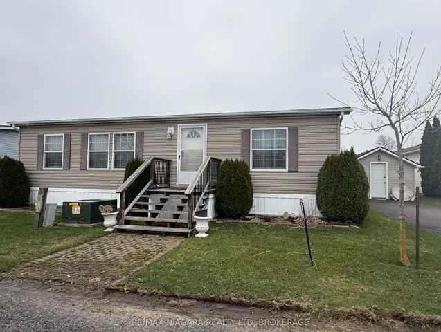 Located in Parkbridge’s Black Creek Adult Lifestyle Community in Stevensville, ON. This gated neighbourhood is known for its peaceful natural surroundings-mature trees, a tranquil pond and creek, and sweeping countryside views-yet remains only minutes from the QEW, the U.S. border, and Lake Erie’s shoreline. At the centre of it all is the impressive 12,000 sq ft Recreation Centre, offering heated indoor and outdoor pools, a hot tub, sauna, library, craft and games rooms, kitchen facilities, plus indoor and outdoor shuffleboard courts. Outdoor enthusiasts will appreciate the tennis courts, scenic walking and biking trails, and an active social calendar with options such as yoga, bingo, aerobics, and line dancing. This 1,092 sq ft bungalow features an open-concept layout ideal for comfortable living. The bright eat-in oak kitchen includes tile flooring and an island, flowing into a spacious living/dining area finished with vinyl plank flooring. Sliding doors lead to a generous back deck. The home offers two bedrooms and two full bathrooms, including a 3-piece bath with shower and 5-piece ensuite with double sinks and a walk-in closet. Additional highlights include front and rear decks, a full-size storage shed, and a double driveway. Located just straight down Oriole to Buffin from the main entrance. This is a land-leased community with an estimated monthly site fee of $949.14 (including taxes); water is billed quarterly at approximately $80. Recent updates include a new roof (2023) and a microwave and dishwasher installed in November 2024.