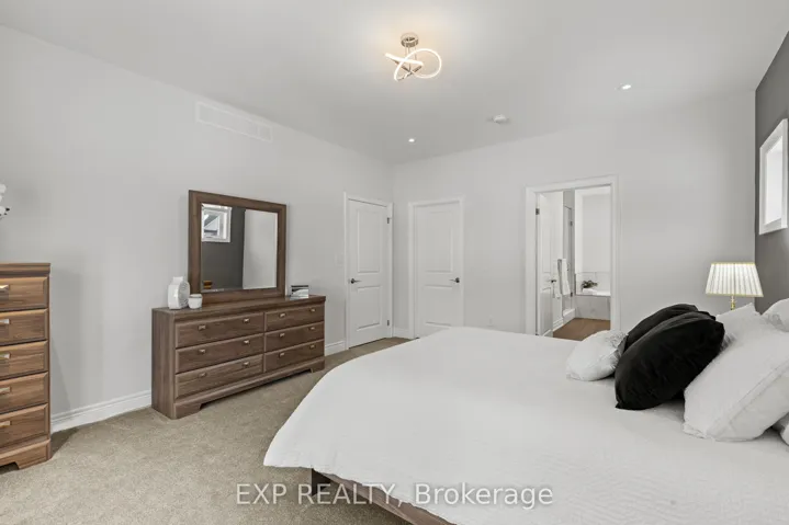 Prepare to fall in love with this exceptional luxury bungalow in one of Ridgeway’s most prestigious neighbourhoods. Featuring a 98-foot-wide frontage, two-car garage with double-wide driveway, and over 3,000 sqft of finished living space, this home offers outstanding curb appeal, privacy, and presence rarely found in today’s market. Step inside to soaring 11-foot ceilings, an extra-wide hallway, refined craftsmanship, and elegant natural tones, creating a bright, sophisticated, and welcoming atmosphere. The sun-filled open-concept living room, centered around a stylish gas fireplace, opens into a refined dining area and flows seamlessly to the covered porch, perfect for entertaining, relaxing evenings, or enjoying your morning coffee. The gorgeous kitchen truly impressive, featuring high-end stainless-steel appliances, quartz countertops, spacious island, built-in double oven, generous cabinetry, and a walk-in pantry. The primary suite is a serene retreat with 9-foot ceilings, plush carpeting, a walk-in closet, and spa-like ensuite with soaker tub, custom design walk-in shower, and double vanity with quartz finishes.The second bedroom with an adjoining bathroom, completes this thoughtfully designed main level. The main-floor laundry provides direct access to the attached double-car garage. The fully finished lower level is designed as a complete in-law suite with a separate entrance and could easily generate income. It features a spacious open-concept family room, modern kitchen with quartz countertops and island, ample storage, two generous bedrooms, dining area, and a stylish 4-piece bathroom. Large egress windows bring in abundant natural light, making the space bright, welcoming, and ideal for extended family, guests, or income potential. Set in a safe, upscale community within walking distance to shops and Ridgeway’s charming downtown, and just minutes from beaches, trails, and parks. This home offers elegance, space, and effortless luxury living at its finest.