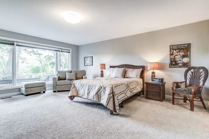 Nestled within the prestigious Westwood Estates, this magnificent custom-built executive home presents an exquisite blend of casual luxury and tranquility. Boasting an impressive grand foyer and sweeping staircase, the property invites you into a well-appointed center hall plan, radiating sophistication and charm. Vaulted ceilings and skylights cascade natural light throughout, while the ornate crown molding and fireplaces enrich the ambience of warmth and comfort. Entertaining is effortlessly accommodated in the combined living and dining area, graced by a wall fireplace that sets the scene for memorable gatherings. The heart of the home, an updated kitchen, comes equipped with built-in appliances, a breakfast bar, and lustrous granite countertops with a quaint breakfast room that opens out to a rear yard and deck, presenting a picturesque backdrop of gardens and serene water views. The family room, a spectacle of light with its floor-to-ceiling windows and an additional gas fireplace, offers a panoramic vista of the Quarry Ponds. Designed with distinction, the spacious main floor master suite is complete with a private ensuite and walk-in closet, ensuring a serene retreat for the discerning homeowner, while two private bedrooms on the second floor share a lovely 4-piece bathroom. The lower level extends the invitation with a wonderful and spacious guest suite (4th bedroom) with wall fireplace (electric) and 3-piece bath. A recreational/games room and a versatile finished work area are perfect for an art studio or workshop. Step out to a private rear patio from the lower level or bask in the tranquil surroundings from the front of the home, with a newer aggregate driveway and walkway enhancing the curb appeal. A 2-car garage, ample parking space and a gas generator cater to practical needs. Embrace a lifestyle where nature’s beauty is your daily canvas in this exquisite home, designed for those who appreciate luxury and privacy in equal measure.