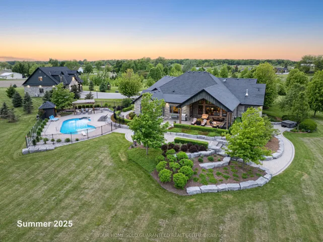 Welcome to a rare blend of modern elegance, peaceful privacy, and country charm-a show-stopping estate on 22 scenic acres that redefines what it means to live in luxury. Nestled in the heart of Niagara’s countryside and backing onto the tranquil Twenty Mile Creek, this extraordinary home features nearly 10,000 sq. ft. of beautifully finished living space, combining function, style, and freedom like no other. Enter the expansive contemporary bungalow where light-filled rooms, refined finishes, and thoughtful design come together to elevate everyday living. With 6+2 bedrooms and 5 bathrooms, this property is built for growing families, multigenerational living, or entertaining on a grand scale. Closets throughout the home feature custom built-in organizers, adding style and function to every space. The home’s striking all-stone exterior creates timeless curb appeal, while in-floor heating in the lower level, attached garage, and detached garage ensures luxurious comfort year-round.With its fully finished walk-out lower level, this home adapts to your lifestyle-space for guests, gatherings, or quiet retreat-surrounded by nature and designed with peaceful living in mind.Outside, a resort-style setting unfolds with a heated pool, hot tub, and a stunning timber-framed porch-A front-row seat to the calming views of Twenty Mile Creek and the natural beauty that surrounds you. The winding driveway, lined with lamp posts and concrete curbs, leads to an attached 3-car garage and a 6-car detached garage with a modern 2-bedroom in-law suite above-ideal for family, guests, or rental opportunities. A separate cabin is also included, providing even more potential for relaxation, hobbies, or extended stays.With 22 acres to roam and creekside views to enjoy, this is country living without compromise-just minutes to schools, shops, wineries, and the towns of Smithville, Beamsville, and all Niagara has. More than just a home, this is where lifestyle meets legacy.