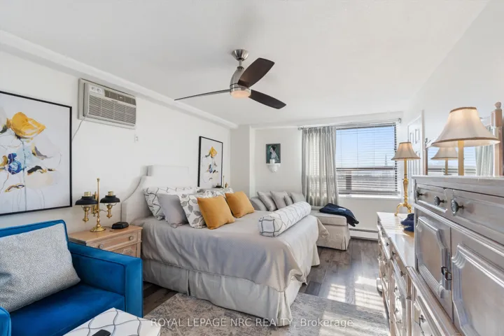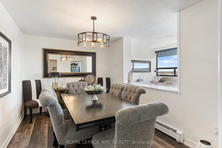 Style, Space & Affordability. This spacious 1400+ sq ft condo has numerous features that will check all the boxes for the discerning buyer. Having only 4 units on each floor gives the complex that exquisite boutique hotel feel. This corner unit offers two large bedrooms, (primary bedroom measures 19′ x 11 1/2′ & has a walk in closet), renovated main bathroom with accessible shower with glass doors, a powder room for guests, formal dining room opens to the extra sitting room where both rooms benefit from an abundance of natural light. Panoramic views can be enjoyed from the many windows of this 6th floor unit. The owner has recently installed a fireplace in the living room adding to the overall ambience of this elegant room. The modern black & white kitchen has newer appliances, open breakfast bar with plenty of seating, stylish ceramic backsplash, Quartz counters and white cabinetry with some glass feature doors. Conveniently located, the utility closet has built in cabinetry perfect for storage of sundries. Improvements throughout include upgraded baseboards, trim, interior passage & closet doors, laminate flooring, built in cabinetry in many areas, custom blinds, etc. Included in the condo fees: hydro, heat, TV, Wifi, parking, laundry, water, common areas & more. Building amenities include: gym, sauna, open deck with use of BBQ, pergolas, outdoor furniture, community gardens, lounge/library, elevator, covered parking & more. Convenient Downtown location is convenient to dining, Performing Arts Centre, Meridian Centre, Farmer’s Market, shopping, Hwy access & so much more.