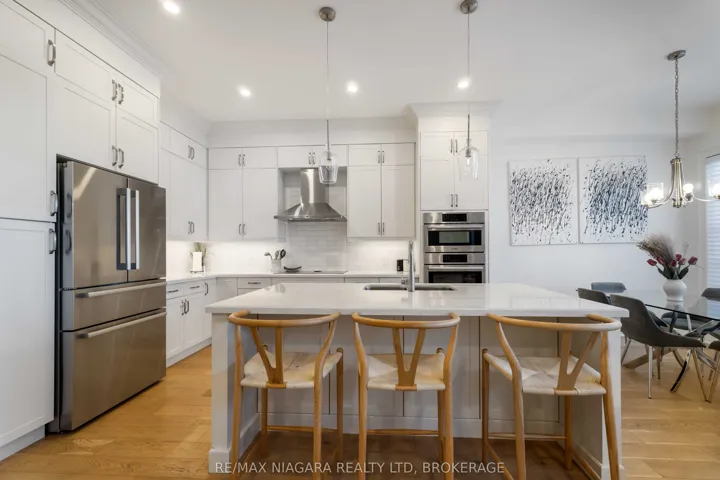 Enjoy the ease of condo living in this beautifully maintained 2-bedroom, 2.5-bath 2-storey townhouse built in 2019, offering 1,998 square feet of modern, well-designed living space plus a full unfinished basement with excellent future potential. The striking stone and stucco exterior creates inviting curb appeal and sets the tone for the quality found throughout. Step inside to a bright foyer with wide-plank hardwood floors that opens to a spacious, open-concept main level-perfect for comfortable everyday living and effortless entertaining. The sun-filled living room flows seamlessly into the dining area and stylish kitchen, creating an ideal setting for gathering with family and friends. The kitchen is a true standout, featuring full-height white cabinetry, quartz countertops, a large centre island with seating, stainless steel appliances, and elegant pendant lighting. The adjoining dining area is bathed in natural light, enhancing the home’s warm and airy atmosphere. Upstairs, the primary suite offers a relaxing retreat with a tray ceiling, generous closet space, and a spa-inspired ensuite complete with a freestanding soaker tub and oversized vanity. Two additional well-proportioned bedrooms share a modern full bath, providing flexible space for children, guests, or a home office. Convenient upper-level laundry adds to the ease of daily living. The full unfinished basement offers exceptional potential to create a recreation room, gym, or additional living area tailored to your needs. Additional highlights include wide-plank hardwood flooring, recessed lighting, tasteful finishes, an attached garage, and a private rear patio surrounded by mature greenery-perfect for quiet evenings or summer gatherings. Located in a desirable, family-friendly condominium community, this move-in-ready home delivers modern comfort and room to grow. Monthly maintenance fees are $374 and include water, parking, and common elements.