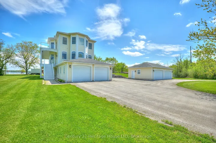 Exceptional Custom Estate on the Niagara River with Private Dock*. A rare opportunity to own a one-of-a-kind, custom-designed residence, with 3800 square feet of finished space, set on approximately two manicured acres with commanding views of the Niagara River. This architecturally refined home blends timeless elegance with thoughtful functionality, featuring soaring 10-foot ceilings, rich hardwood floors, and floor-to-ceiling Andersen windows that flood the interior with natural light. Designed for both everyday living and exceptional entertaining, the home showcases top-tier finishes including marble and granite surfaces and three gas fireplaces. Car enthusiasts will appreciate the attached four-car tandem garage and separate heated four-car garage. Enjoy the tranquility of waterfront living from two expansive covered patios, or launch your boat from your private dock. With the Niagara Parkway Trail just steps away and the QEW minutes from your door, this home offers a lifestyle of rare beauty, privacy, and convenience. Seller is flexible on all furniture and equipment. (dock permit is by annual application renewal)* AGENTS PLEASE SEE ADDITIONAL FEATURE SHEET IN ATTACHMENTS.