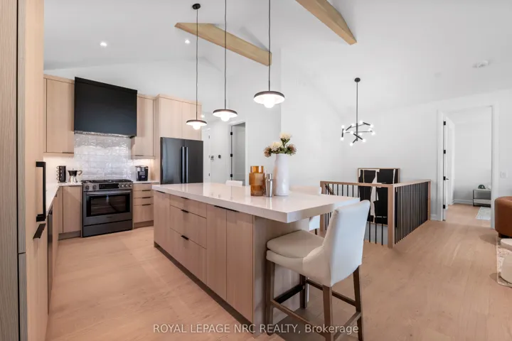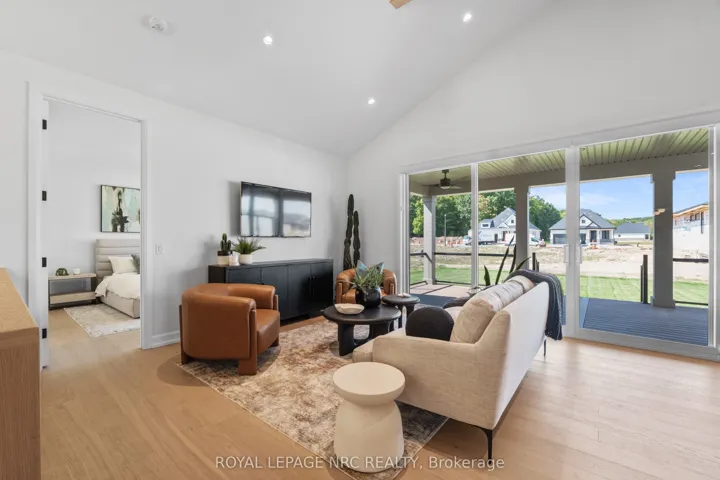 Listing Price includes Government Enhanced HST Rebate. Welcome to 4 Page Street, a luxurious 2+2 bedroom, 3 bathroom bungalow crafted by Rinaldi Homes! Thoughtfully designed with upscale finishes and meticulous attention to detail, this new home delivers an elevated living experience w/ a seamless blend of style, comfort, & functionality. The main living area features stunning 16′ sliding glass doors, a soaring vaulted ceiling in the great room/kitchen/dining area, enhanced by striking faux wood beams and an abundance of natural light (9′ ceiling in all other areas of the main floor). Wide-plank engineered white oak hardwood & luxurious 12’x24′ tile flow throughout, complementing the custom kitchen featuring upgraded cabinetry, quartz counters, an oversized island w/premium Bosch appliances (with gas range), &perfectly curated lighting. The primary suite is a true retreat, offering a spa-like ensuite with a rain shower, heated floors, & quartz counters, plus a custom walk-in closet. Triple-glazed windows, solid interior doors, & refined trim details elevate the home’s everyday feel. The finished basement expands the living space, featuring a spacious family room with a linear gas fireplace, 2 additional bdrms, a 4 pc bathroom, a home gym (or office) with glass barn doors, and luxury vinyl flooring throughout. An Open stair design, upgraded railings, and thoughtful lighting create a space that feels anything but secondary! Step outside to enjoy a covered TREX composite deck with privacy glass, a gas BBQ line, & a lush green lawn. The landscaping package also includes an interlocking stone driveway, a full irrigation system & manicured gardens. The exterior exudes timeless curb appeal by combining stone detailing with James Hardie board-and-batten siding. Rinaldi’s Forest Park community is the quiet, upscale setting you have been waiting for. Only minutes to the Steve Bauer Trail, Fonthill Band Shell, local wineries, golf courses, boutique shops & everyday amenities.