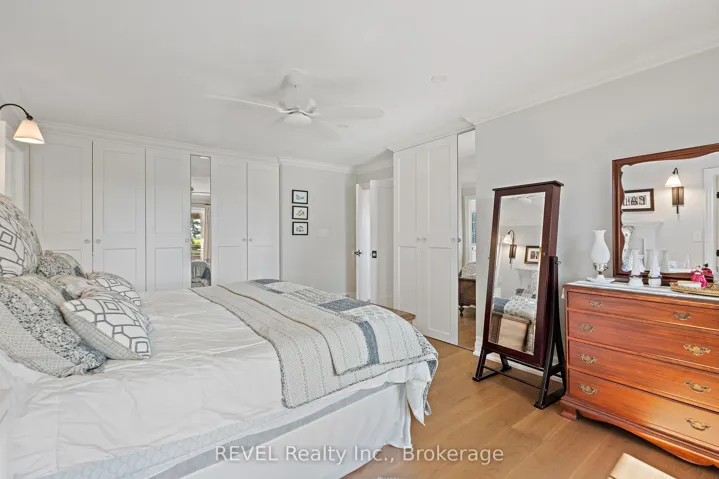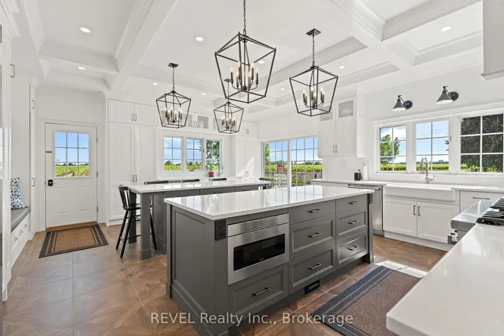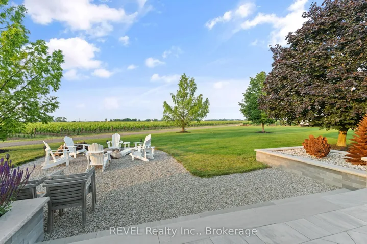 Boasting over 3,400 square feet of beautifully designed living space, this exceptional 3+2 bedroom, 3+1 bathroom estate is set on a serene 1.6-acre lot in the heart of Niagara-on-the-Lake, surrounded by picturesque vineyard views. Thoughtfully renovated in 2022 by Wendy Edwards Design Inc., the home seamlessly blends contemporary elegance with elevated functionality.The main living space impresses with soaring 16-foot ceilings in the great room, anchored by a striking floor-to-ceiling stone wood-burning fireplace. The chef’s kitchen is a true showpiece, featuring double quartz islands and a 48″ dual-fuel Thermador range with steam oven, six-burner gas cooktop with electric griddle, electric oven, and oversized double exhaust fan-perfectly designed for entertaining and everyday luxury.Two bedrooms offer private balconies, creating tranquil retreats with stunning views. A dedicated home office with custom built-ins and a 9-foot coffered ceiling provides an inspiring workspace.The fully finished lower level offers a complete in-law suite with its own kitchen, bathroom, laundry, gas fireplace, and additional bedrooms-ideal for extended family or guests.Outdoor living is equally impressive, highlighted by a 42″ Weber natural gas BBQ equipped with rotisserie, griddle, sear station, and smoker-perfect for hosting in true Wine Country style.With Bell Fibre internet, natural gas, and city water services, this home combines modern convenience with the peaceful beauty of its surroundings. A rare opportunity to experience refined country living in one of Niagara-on-the-Lake’s most sought-after settings-truly an exceptional place to call home.