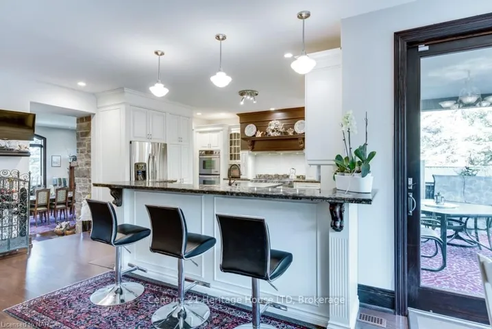 STUNNING WATERFRONT VIEWS from almost every room! Vast, well-treed private backyard oasis. Custom-built executive 2 storey home with fully finished lower level, beautifully situated on the well-sought after scenic Niagara River Parkway. Over 7,200 sq ft of finished space for you to enjoy! Private driveway leading to 1,500 sq ft insulated 4 car garage with workshop! Impressive front courtyard & fire pit with professional landscaping. Grand entrance features a beautiful covered porch. Inside, you will discover 9 ft ceilings & a large hallway leading to several rooms & formal living room. When you look up, a huge crystal chandelier will light up the hallway and staircase to the second floor. Formal sunken dining room features massive wood fireplace. Kitchen features large island with second sink, built-in dishwasher & top of the line appliances incl. commercial quality gas stove & 2 ovens. Corner sink with stunning window views. Magma Gold Brazilian granite countertops. Entertainment area off of the kitchen is awe-inspiring with picturesque views of the river & yard. Large family room with patio door leading to a roof-covered concrete back porch overlooking the 20′ X 40′ in-ground, heated saltwater pool. Main level guest bedroom has 3 pc ensuite. 3 pc guest powder room. Upstairs, you will find a magnificent primary bedroom with romantic gas fireplace & a balcony with heavenly views of the River. Through a sizable walk-in closet with washer/dryer, you arrive into a spa inspired ensuite bath with multiple showers, jacuzzi tub, double sinks, toilet, bidet & lots of closet space. Second shared 5pc bathroom. Lower level is fully finished, open concept, has interior windows for extra light & walkup to the garage. Kitchenette offers perfect in-law set up. Family room, wine cellar, sitting area, zen/relaxation area (can be used as a bedroom) & workout area with 2nd laundry. Owned water treatment system offers unlimited supply. 10 minutes to new hospital, COSTCO and more!