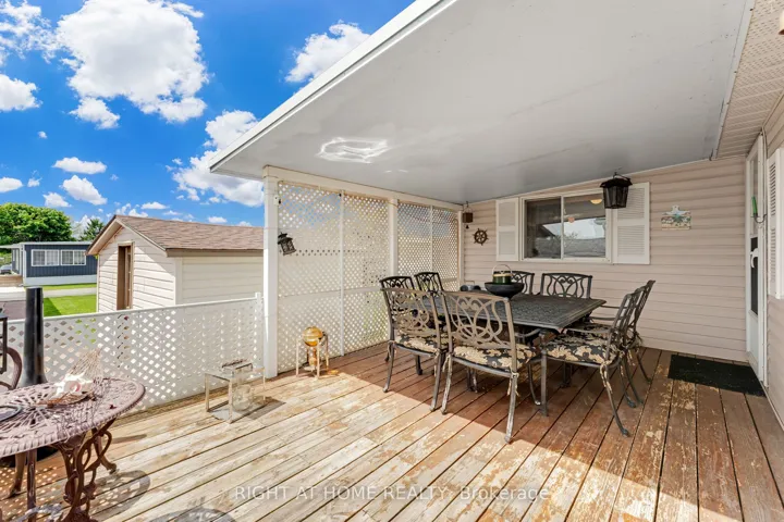 Fall in love with this bright, open-concept and beautifully maintained 1,220 sq ft bungalow located in the sought-after Black Creek Adult Community in scenic Stevensville. Designed for comfort and easy entertaining, the home also offers a spacious 180 sq ft sunroom and a partially covered 17′ x 11′ deck/terrace overlooking a manicured side yard – perfect for morning coffee or gatherings with family and friends.Inside, a formal dining room provides an inviting hosting space, while the light-filled kitchen and family room feature soaring cathedral ceilings and a cozy gas fireplace that adds warmth and charm. The conveniently placed laundry area sits just off the kitchen for everyday functionality.The hallway leads to generous storage and utility space, a versatile den, a bright office/bedroom with walk-out to the deck, a spacious primary bedroom, and a large 5-piece bathroom complete with a relaxing jetted tub.A double paving stone driveway offers two private parking spaces, and a powered 10′ x 10′ shed provides extra room for tools, hobbies, or seasonal storage.Enjoy an active and social lifestyle only steps away with access to the community centre, indoor and outdoor pools, indoor whirlpool spa, tennis courts, shuffleboard, saunas, library, gym equipment, golf and walking trails. Activities include yoga, aerobics, line dancing, tai-chi and more.Conveniently located just a short drive to Niagara Falls, Crystal Beach, Niagara Safari and nature parks. Experience enjoyable, peaceful & carefree living! book your private showing today! Estimated Monthly fee of $789.37 that covers Land-Lease and Taxes.