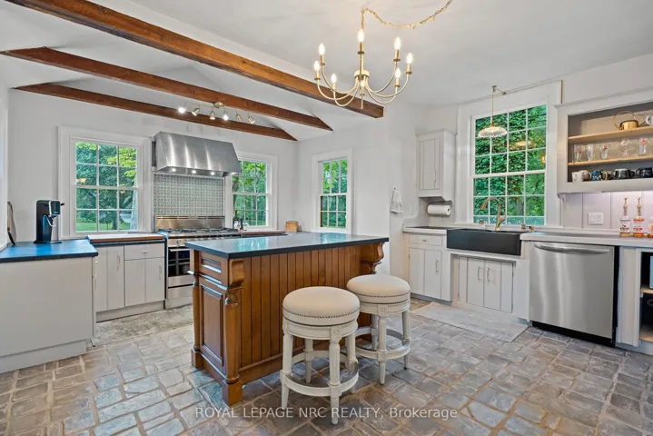 Step into The Schoolmasters House, a beautifully preserved c.1818 residence that blends historic charm with modern comfort in the heart of Old Town Niagara-on-the-Lake. Set on a generous 144 x 104 ft lot with landscaped gardens and a tranquil fish pond. Main floor living with a spacious primary bedroom with ensuite, a second full bathroom with a deep soaker tub, laundry, and a large family room that also offers space for a home office or hobby area. Upstairs, you’ll find two additional bedrooms with ensuite bedrooms, one with an exterior entrance and private stairs, as well as a fourth bedroom on the second floor, another full bath, and a cozy sitting area. The chefs kitchen is outfitted with a professional gas stove, abundant prep surfaces, and generous storage. Meals can be served in the formal dining room or enjoyed casually at the large island with breakfast bar. This former Bed and Breakfast is ideal for extended families, home office, or rental use. Several bedrooms feature private entrances, making them perfect for guests or short-term stays. Original wide-plank wood floors run throughout this home (carpet-free) while four (4) wood-burning fireplaces and a gas fireplace add warmth and character to every space. This multi-generational, multi-family home offers exceptional flexibility and income potential. The home also includes two (2) powered workshops, a garden shed, and a garbage shed. This is a rare opportunity to own a piece of Niagara-on-the-Lake’s history with timeless character and modern convenience just steps from the shops, dining, and charm of Old Town. Only two (2) blocks to Queen Street.