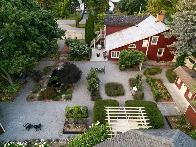 Step into The Schoolmasters House, a beautifully preserved c.1818 residence that blends historic charm with modern comfort in the heart of Old Town Niagara-on-the-Lake. Set on a generous 144 x 104 ft lot with landscaped gardens and a tranquil fish pond. With four bedrooms, three of which include private ensuites, and two additional full bathrooms, this former Bed and Breakfast is ideal for extended families, home office, or rental use. Several bedrooms feature private entrances, making them perfect for guests or short-term stays. Original wide-plank wood floors run throughout the home there is no carpet while four wood-burning fireplaces and a gas fireplace add warmth and character to every space. The main floor includes a spacious primary bedroom with ensuite, a second full bathroom with a deep soaker tub, laundry, and a large family room that also offers space for a home office or hobby area. The chefs kitchen is outfitted with a professional gas stove, abundant prep surfaces, and generous storage. Meals can be served in the formal dining room or enjoyed casually at the large island with breakfast bar. Upstairs, you’ll find two additional ensuite bedrooms one with private stairs and an exterior entrance alongside a fourth bedroom, another full bath, and a cozy sitting area. This multi-generational, multi-family home offers exceptional flexibility and income potential. The home also includes powered workshops, a garden shed, and a garbage shed. Major upgrades include a new cedar roof on the front (2021) and rear (2024), and updated furnace and central air in 2017. A heritage grant is available to assist with roofing on the addition along Gage Street. This is a rare opportunity to own a piece of Niagara-on-the-Lakes history, with timeless character and modern convenience just steps from the shops, dining, and charm of Old Town.