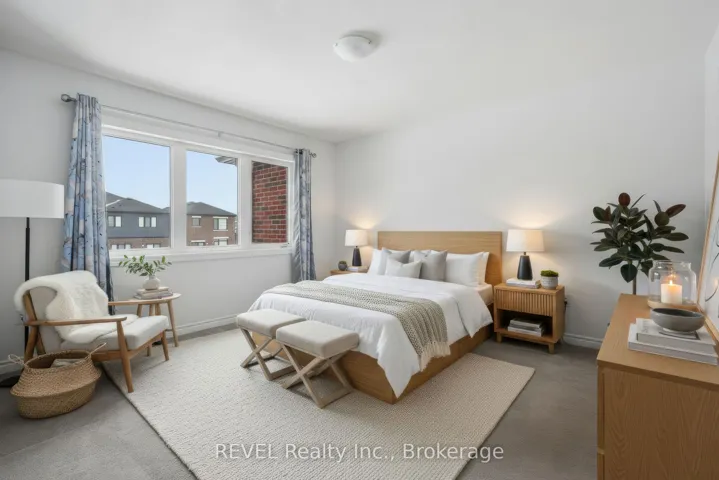 This pristine, two-year-old freehold townhouse in the Hunter’s Pointe community offers a clean, move-in-ready layout with 3 bedrooms and 2.5 bathrooms. The home features a stone-covered front porch and an open-concept main floor highlighted by a stylish kitchen with quartz countertops and newer stainless steel appliances. Large windows throughout provide plenty of natural light, and solid wood stairs lead to the second level where you’ll find a spacious primary bedroom with a walk-in closet and a 3-piece ensuite. Functional additions include interior garage access and a large, unfinished basement with laundry and a bathroom rough-in, offering great potential for future storage or living space. Located near the Welland Canal, the property is steps away from parks and trails while remaining conveniently close to the Seaway Mall, groceries, golf courses, and Highway 406 for easy commuting.