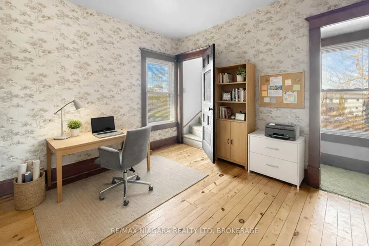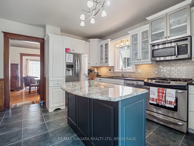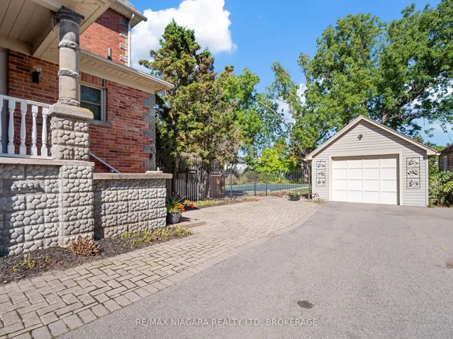 This beautifully crafted 2.5-storey stone and brick home sits on a generous lot just steps from the Niagara River, offering a rare blend of elegance, history, and modern comfort. Step inside to discover soaring 9-foot ceilings, gleaming wood floors, and exquisite original wood trim and doors. The inviting living room features a corner gas fireplace with oak surround, while the formal dining room seamlessly connects to both the kitchen and living area. The thoughtfully updated kitchen (2012) boasts granite countertops, crisp white cabinetry, a centre breakfast island, and tiled flooring perfect for everyday living and entertaining. A unique secondary staircase leads to the upper level, where the primary bedroom offers its own private balcony (redone in 2016). The second-floor bathroom was fully remodeled in 2018, complementing three additional spacious bedrooms. The finished third level provides a versatile retreat with skylights, a carpeted recreation room, office area, and ample storage. Outdoors, beautifully landscaped grounds frame a stunning in-ground pool (18′ x 38′, up to 9.5 ft deep) with a brand-new liner installed in 2023 along with a new heater (2023), creating a private oasis for relaxation and gatherings. A fenced backyard and single detached garage complete the exterior. This meticulously maintained home has seen numerous updates, including a new roof (2016), furnace (2018), re-done driveway (2016), flooring (2014), balcony, windows, and more ensuring peace of mind for years to come.
