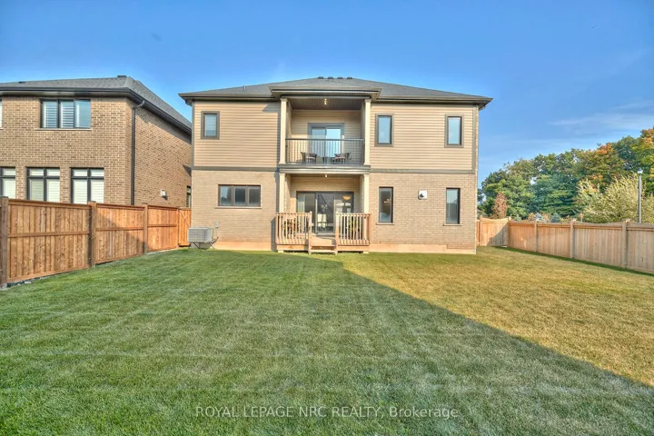 Prestigious, Polished & Powerful! A commanding presence from the curb. With over 3,400 square feet above grade, 25 Philmori Boulevard delivers presence from your very first step inside. Soaring 9-ft. ceilings, gleaming porcelain tiles and rich chocolate hardwood. A dramatic curved oak staircase rises like sculpture. At the centre, a kitchen built to impress – quartz surfaces, an oversized island made for gathering, premium stainless appliances, and a dedicated coffee and bar station that transitions seamlessly from early mornings to elevated evenings. The space flows effortlessly into the great room and formal dining area, where coffered ceilings add architectural depth and a gas fireplace anchors the room with warmth and confidence. A private main-floor office creates a polished work-from-home environment, while the main-floor laundry with interior garage entry keeps daily living seamless and efficient. Built-in speaker system throughout adds another layer of elevated comfort. Upstairs, the primary suite feels like a private penthouse retreat. A sun-filled sitting area opens to a private balcony – your elevated perch for morning coffee or late-night reflections. Dual walk-in closets provide space without compromise. The spa-inspired ensuite features double vanities, a deep soaker tub, and a glass shower designed for true relaxation. Three additional bedrooms and a dedicated media lounge. Two more full bathrooms, including one with Jack-and-Jill access. Space for family – room for guests. An expansive unspoiled basement awaits your next vision – theatre, fitness studio, wine cellar, or all of the above. Outside, enjoy a fully fenced yard, interlock driveway, and attached double garage. A park and playground sit directly across the street. Just moments from the famous fairways and escarpment views and surrounded by the award-winning wineries of the renowned Niagara Region, this address places you at the centre of it all. This is L-O-C-A-T-I-O-N at its best!