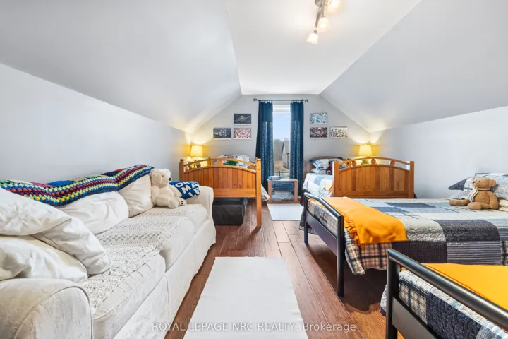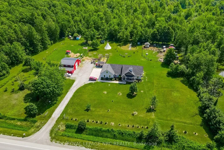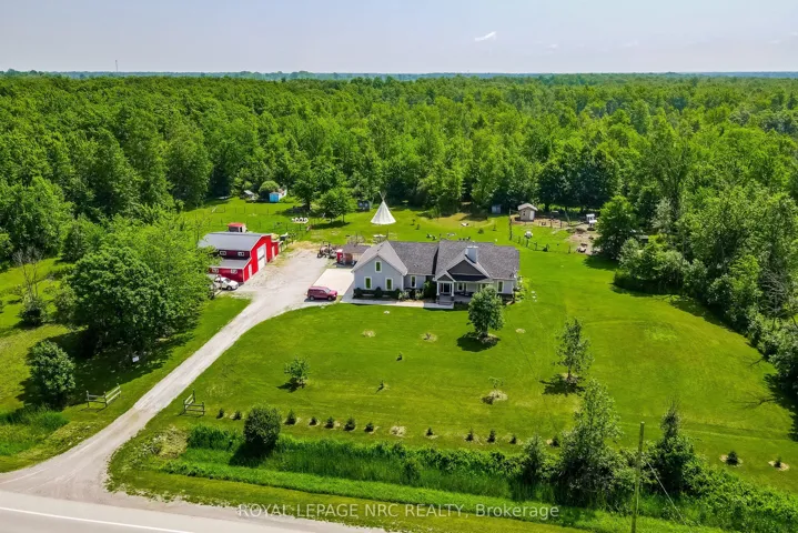 Perfect setting for nature enthusiasts, homesteaders, hunters, and mechanics, escape the chaos of city life to this one of kind rural property. This home was custom built by the original owners for a homesteading lifestyle and is situated on 37+ acres of mainly forested property. Features include engineered hardwood flooring and ceramic tiles throughout, 9′ ceilings, large Pollard windows, wood burning fireplace in the living room, main floor laundry with adjacent shower room, and a separate dining room with patio doors to the covered rear porch. The primary bedroom features a walk in closet, electric fireplace, spacious spa-like ensuite with claw foot soaker tub and separate shower. An additional bedroom and den with French doors are located at the opposite side of the house with a 4 piece bathroom. Newer insulated 30×50 barn (2018)is a mechanics dream with a car hoist, hydro and underfloor heating. Outdoor features include covered front porch, covered and fenced rear patio area and covered rear deck, green house, farm shop (she-shed), 18′ teepee with heavy duty canvas (2022), portable toilet, 2 fenced areas for animals, chicken coops, ponds, and a large garden area. The basement is currently used for storage, but has high ceilings and is suitable for finished space. There is parking for multiple vehicles and an attached double garage with concrete apron. Secondary access to the property from White Road. Convenient location central to Niagara Falls (12 min drive to new South Niagara hospital site), Welland (9min drive) and Port Colborne (9min drive).Whether you want to hunt deer and turkeys in your own forest, commune with nature walking the trails, go ATVing, grow your own food, raise livestock or simply enjoy living in a rural setting, this could be your opportunity to secure your place in agricultural zoning with a multitude of possibilities.