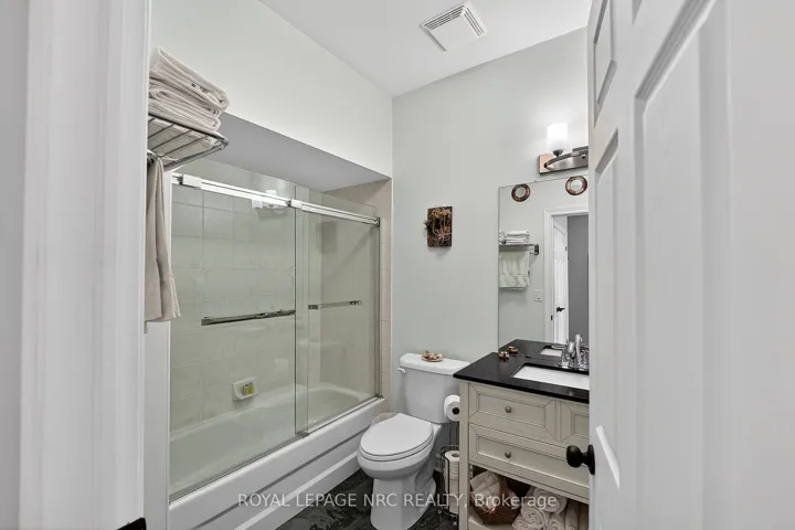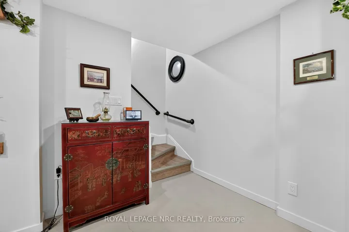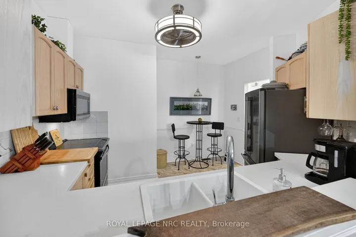 Welcome to this beautifully renovated 1,313 sq ft “Northwind” condo backing onto a serene wooded ravine! This move-in-ready, completely carpet-free home offers a bright, open layout with premium luxury vinyl and ceramic flooring throughout the main level. The stunning updated kitchen features Caesarstone concrete-style countertops, a white Blanco sink, and stainless steel appliances. Relax in the living area by the cozy electric fireplace.The main floor boasts two spacious bedrooms outfitted with California shutters, including a primary suite with a 3-piece ensuite, plus a fully updated 4-piece guest bathroom and convenient main-floor laundry. The partially finished lower level (completed in 2020) significantly expands your living space, offering a third bedroom, a modern 3-piece bathroom, and a spacious TV room perfect for guests or a home office.Step outside to your private outdoor oasis with no rear neighbours! Enjoy lush, peaceful ravine views from the deck (2018) or the beautiful custom flagstone patio (2019). The lifestyle here is unbeatable-you can easily walk to Jaycee Park, and from there, take the scenic walking and biking bridge straight into Port Dalhousie! Spend your days relaxing at the beach, grabbing a bite at local restaurants and coffee shops, walking out along the pier, or taking a nostalgic ride on the historic 100-year-old carousel for just 5 cents.This home has been meticulously maintained with major mechanical peace of mind, including a high-efficiency furnace, A/C, and owned hot water tank (2018), plus upgraded attic insulation (2020). Further updates include modern vanities, LED lighting, a new garage door motor (2024), and a Duraroc rubber surface on the front deck (2024). Enjoy low-maintenance living with an attached garage.