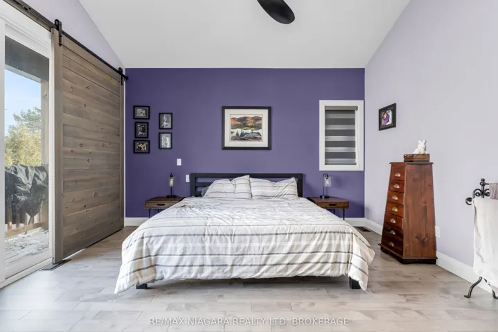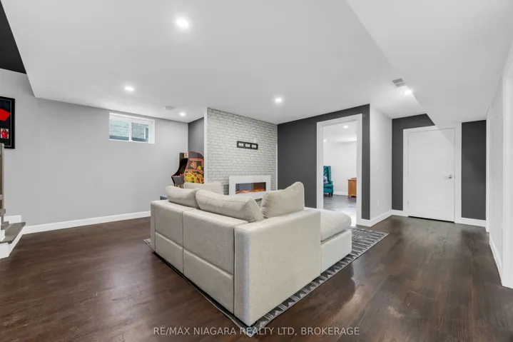 Beautiful 4-bedroom home on a quiet cul-de-sac in the charming lakeside town of Port Colborne, just a short walk to Lake Erie. Built in 2019 and enhanced with even more recent upgrades. This home offers a functional layout with modern finishes throughout. Updates include hardwood flooring, paint, custom barn doors, and an updated kitchen with granite countertops, centre island, gas stove(2025), built-in microwave, and cabinetry. The kitchen flows into the dining area with a gas fireplace and bright living room with vaulted ceilings. The primary suite includes patio access to the rear deck, custom barn doors, walk-in closet, and a 4-piece ensuite. A second bedroom offers its own 3-piece ensuite, while a third main-floor room is ideal as a den, office, or exercise space. Main-floor laundry and direct access to the 1.5-car garage add convenience. The finished basement features two additional bedrooms, a spacious rec room with dry bar and wall-mounted electric fireplace, a 3-piece bath with glass shower, storage areas, and space for a home theatre or gym. Vinyl flooring, 100-amp panel, and gas furnace complete the lower level. The modern exterior, fully fenced yard, rear deck access, and custom window coverings add to this incredible home. Exceptional value in a sought-after lakefront community.