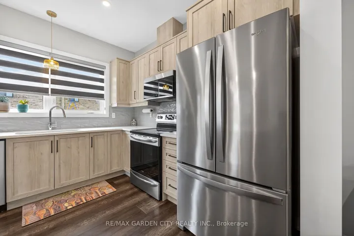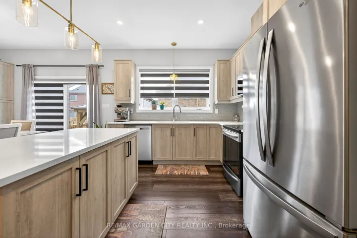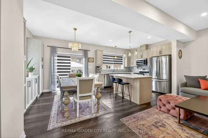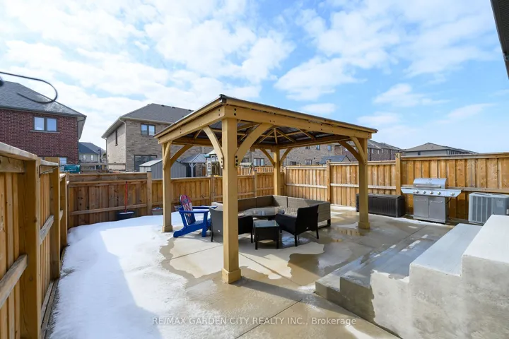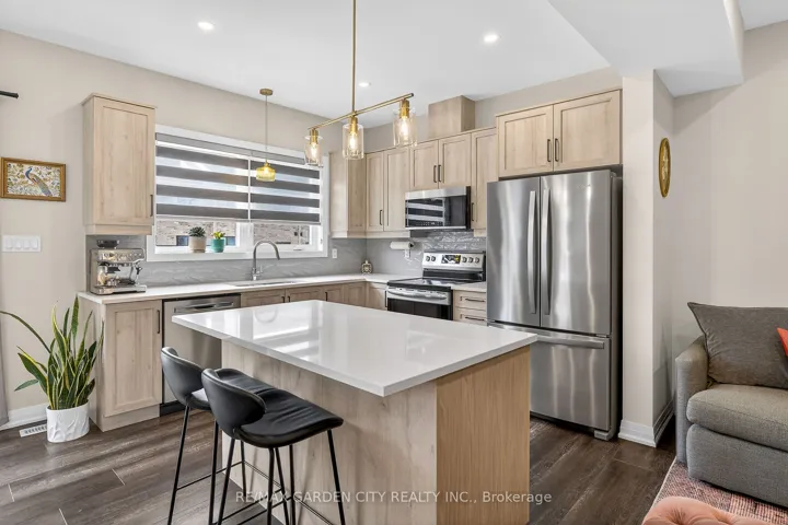 NEARLY NEW 3 BEDROOM, 2.5 BATH EXECUTIVE END UNIT TOWNHOME approximately 1700 square feet built by Rosemount Homes. Stunning open concept design with high ceilings, large gourmet kitchen with island and abundant cabinetry. Spacious primary bedroom suite with elegant ensuite bath, walk-in closet & private balcony. Bedroom-level laundry. OTHER FEATURES INCLUDE: fridge, stove, dishwasher, custom window blinds, central air, roughed- in central vac, washer/dryer. Glass doors from kitchen lead to entertainer’s dream, fully-fenced backyard, complete with gazebo & expansive concrete patio. Double concrete driveway. Located in the heart of town only steps to park schools & conveniences. Short drive to the QEW access and located Niagara’s picturesque Wine Region.