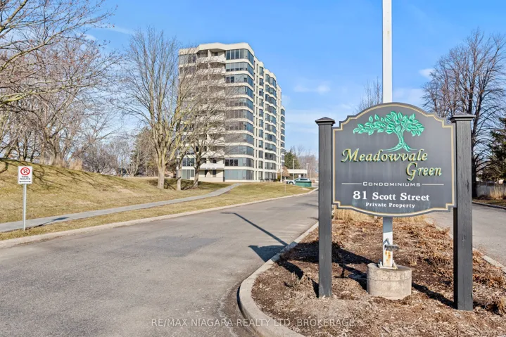 Welcome to Meadowvale Green at 81 Scott Street, one of Niagara’s most sought-after condominium residences. Set on approximately 3.3 acres of beautifully landscaped, park-like grounds, this prestigious and impeccably maintained building offers resort-style living in a prime location. Enjoy an exceptional array of amenities including a heated saltwater pool, waterfall and seating areas, BBQ areas, a car wash bay, guest suite, party room, billiards room, fully equipped exercise room, bicycle storage, ample visitor parking, and high-speed internet included in the condo fees. The building is smoke-free and dog-free, offering a quiet and well-maintained environment. This bright, east-facing, open-concept suite features floor-to-ceiling windows with panoramic views, creating an airy and inviting living space. The spacious layout includes in-suite laundry and generous storage throughout. The kitchen is equipped with stainless steel appliances, including a fridge, stove, microwave, and dishwasher. Included with the unit is one underground parking space, a large in-suite storage closet, and an additional storage locker. Extra parking is available to rent. Ideally located within walking distance to shopping, restaurants, transit, and Fairview Mall, with easy access to the QEW. Perfect for retirees, downsizers, or busy professionals seeking low-maintenance living in a beautifully appointed community.