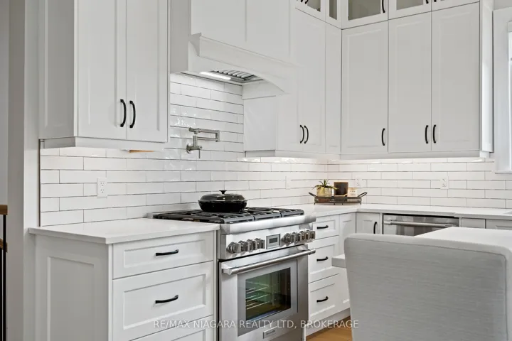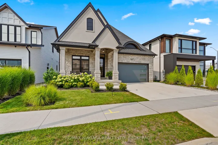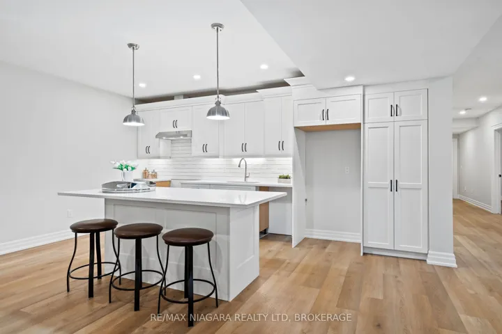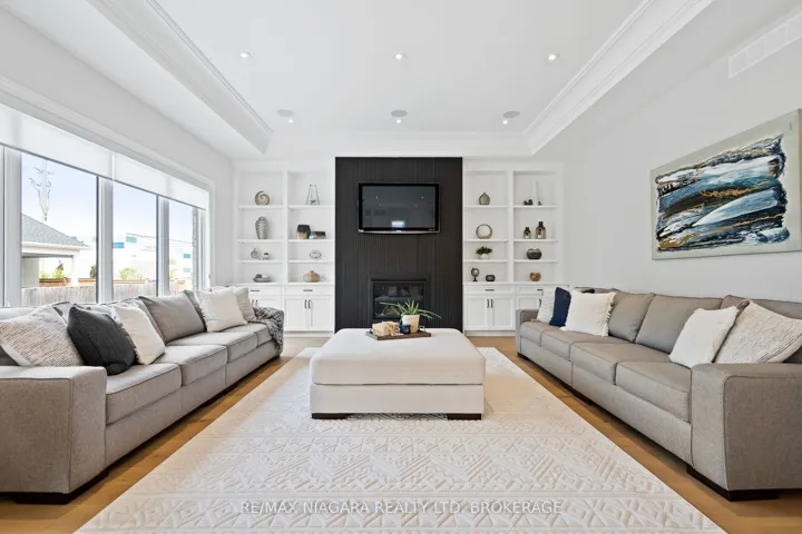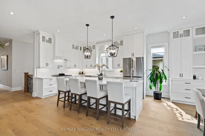 Discover low-maintenance luxury living in this beautifully designed bungalow, perfectly situated between Niagara-on-the-Lake’s vineyards and the amenities of Niagara Falls. This home offers the ideal blend of style, function, and comfort for today’s modern buyer. Step inside to soaring ceilings, elegant panel detailing. The chef-inspired kitchen features quartz countertops, custom built-in cabinetry, and a premium Thermador gas stove, perfect for entertaining. With 5 spacious bedrooms, a bonus room ideal for a home gym or office, and two full kitchens (including one in the finished basement), the layout is ideal for multi-generational living or hosting guests. Relax by one of two gas fireplaces or enjoy the outdoors on the covered patio. Notable Features: Engineered hardwood flooring throughout, Heated floors in all bathrooms, Motorized electric blinds, Second kitchen in basement, AC (2022), HVAC (2022), Roof (2022) In-ground sprinkler system, Double garage + driveway parking