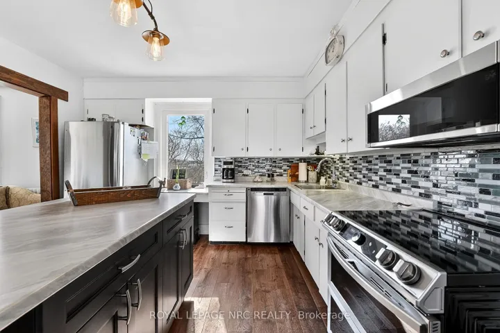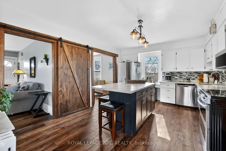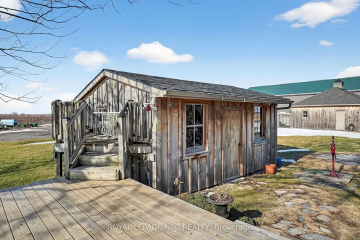 Beautifully maintained century home on approximately 1 acre property in rural Niagara-on-the-Lake! In the same family for several generations, this home features a welcoming covered front porch on which to enjoy morning sunrises or relax in the evening with a glass of local wine from Southbrook Organic Wines, right across the street! Fantastic main floor layout, ideal for entertaining! Enter into the sunroom off the driveway with plenty of storage for coats/shoes. Gorgeous period door with stain glass feature. Bright and spacious eat-in kitchen with oversized centre island, plenty of cupboards and counter space and gleaming stainless steel appliances. Formal living room as well as relaxed family room off of kitchen, separated by tasteful barn door that opens the space or closes for privacy. Laundry/mud room located at the back of the house off the large deck, which is complete with extra privacy fencing and ideal for dining al fresco spring, summer and fall. Convenient 2-piece bath located in the laundry room with barn door for privacy. Upstairs you will find three spacious bedrooms, all with stunning views all around! The primary bedroom has a large walk-in closet with built-in shelving and has hardwood floors. The other bedrooms are also a very good size, great for family or guests. The landing offers a comfortable nook ideal as office space or quiet reading/study area. Large 4-piece family bath completes the upstairs. The basement is spacious and unfinished. Great additional space could be finished for whatever purpose required. Large horseshoe-shaped driveway, makes it easy to get in and out. Detached double car garage with hydro and extra storage space. Cutes She-shed would be a great craft or office space as well. Fantastic sunrises and stunning sunsets, this period home is at a great price point for families looking to move to Niagara-on-the-Lake! Down road from 2 elementary schools. 10 min drive to Old Town. 2 mins drive to QEW.