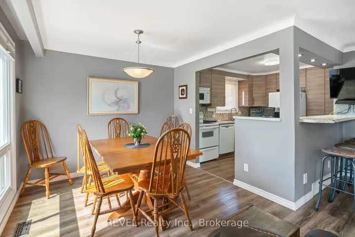 A charming, well-maintained backsplit, tucked away on a quiet, family-friendly street in a desirable North End St Catharines neighbourhood. Step inside to a bright, open main floor featuring a spacious living room and dining room with large picture windows, an updated kitchen with ample cabinetry and natural light. Luxury vinyl in main living areas (kitchen, living, dining, main bath, primary bedroom). Upstairs you’ll find three generously sized bedrooms and a 4-piece bathroom. The 3rd level boasts a cozy family room with a 3-piece bathroom and a gas fireplace. From the Family Room, find your way to the 4th level to find the Furnace / CA ( 5 years old ), Electrical, Water Heater and Laundry Area. Enjoy the low maintenance, private backyard perfect for entertaining, gardening, or relaxing. The current owners installed leaf gutter guards in 2024. With a separate side entrance and a large detached garage with electrical, the garage can also be a work shop and more. This home is as functional as it is inviting. Just minutes from great schools, shopping, parks, and Port Dalhousie, Niagara-on-the-lake and the Welland Canal Walking and Biking trails. Just a few minutes bike ride to Sunset Beach, with one of the nicest Sunsets on the Great Lakes!