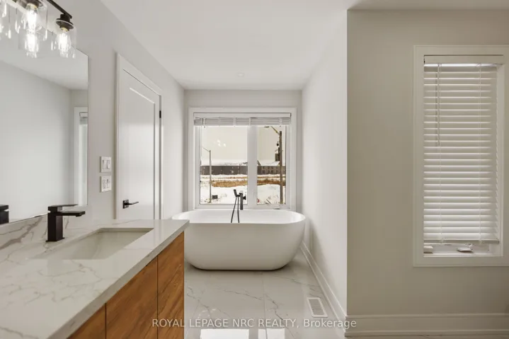 Welcome to Satisfaction. Custom built luxury two storey semi-detached house well positioned in and exclusive new subdivision in Niagara Falls. This 2,078sf semi has (4+1) large bedrooms, (2.5+1) bathrooms and (1+1) kitchens. With large open concept living/dining area overlooking the backyard, complete with rear deck off the dining room, custom kitchen with island, stainless steel appliances and quartz countertops. Large living room with electric fireplace that opens to rear deck overlooking the backyard. The spacious primary suite feature a walk-in closet and luxurious en-suite with glass shower and soaker tub. Three additional oversized bedrooms and a full bathroom upstairs. Engineered hardwood and tile flooring throughout. Complete with single car garage, main floor laundry, pot lights, 9 foot ceilings, HRV system, tankless on demand hot water heater. The basement (750sf) has a side walk-up entrance, an additional bedroom, full bath, kitchen and laundry to use as an in-law suite. Conveniently located in the desirable new Splendour subdivision, with easy access to great schools and public transit. Backing onto the new Thundering Heights Public School, close to parks, Heartland Forest, walking distance to bigbox retail, grocery, restaurants, and the QEW. Enjoy the best of what Niagara has to offer from this central location.