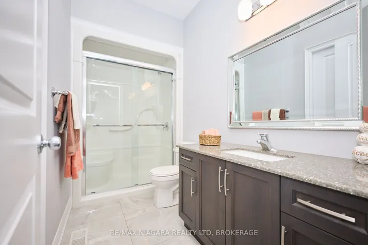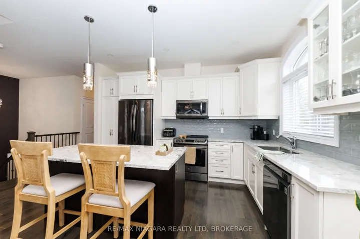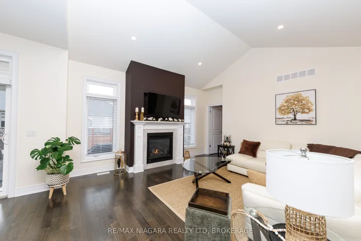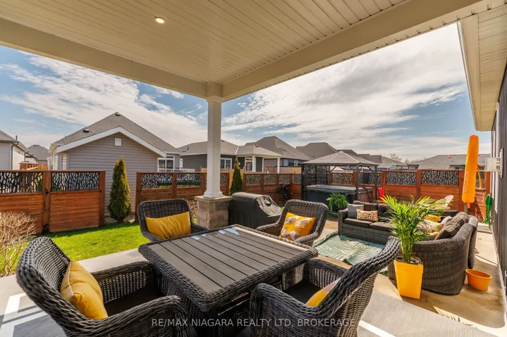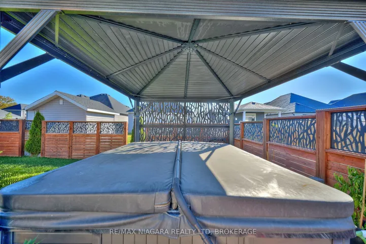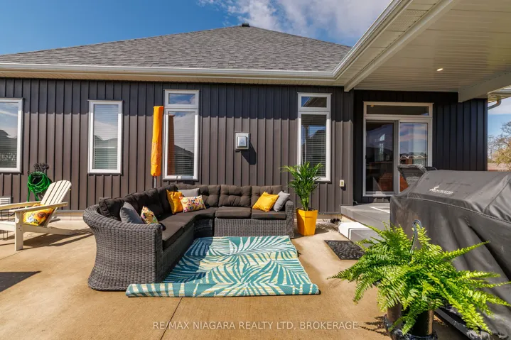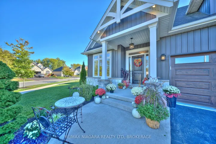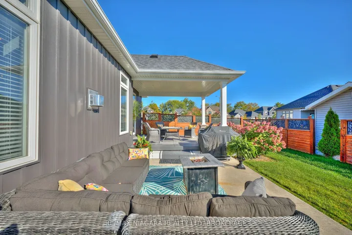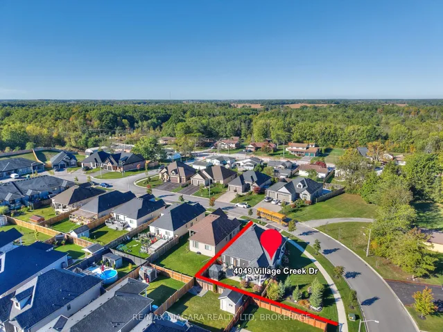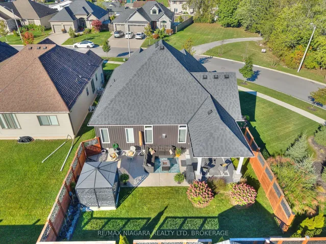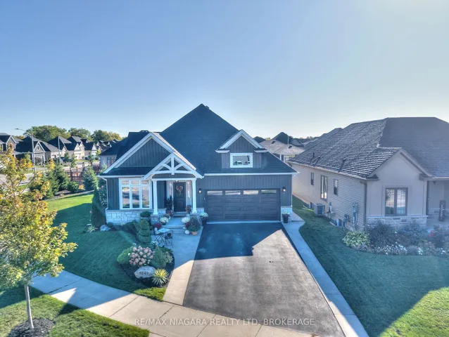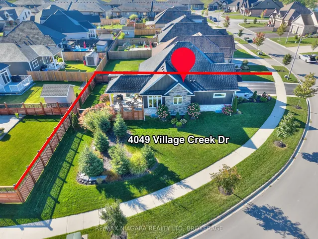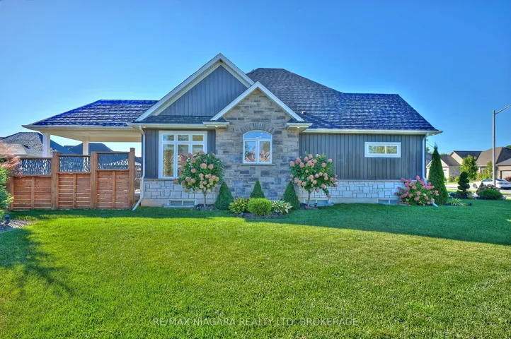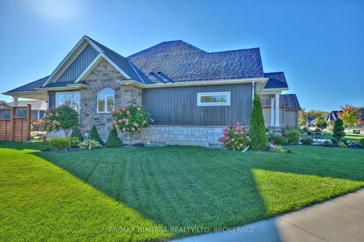 Welcome to 4049 Village Creek Trail. This picturesque 8-year-old bungalow is set on a beautifully landscaped corner lot in one of Stevensville’s most sought-after communities. This striking home catches the eye with its timeless curb appeal, featuring stone and vertical siding, rich colour contrasts, wood grain textures, and bold front pillars. The lush, rounded lot is surrounded by manicured lawns and perennial gardens, creating a peaceful, private retreat. Step into the backyard and discover multiple areas designed for relaxation and entertaining, including a 15′ x 11′ covered concrete deck, a spacious 26’6″ x 13′ concrete patio, and a 6-seat hot tub with a gazebo perfect for enjoying warm summer nights or crisp fall evenings. Inside the open-concept great room is bright and inviting, featuring engineered hardwood floors, vaulted ceilings, quartz countertops, and a gas fireplace with an elegant surround. The kitchen includes a centre island with breakfast bar seating, stainless steel appliances, and sliding doors leading directly to the back deck. The main floor features a primary bedroom complete with a walk-in closet and 4-piece ensuite, plus a second bedroom with ensuite privilege to the main 3-piece bath. The finished basement expands the living space with a cozy recroom, a third bedroom, a 3-piece bathroom, a functional office area, plus plenty of room for storage. Ideally located just a short walk from Stevensville Mini Park and the Conservation Club, where you can enjoy walking trails, nature views, and fishing. This home is a true balance of comfort, style, and nature. Whether you’re relaxing indoors or entertaining outdoors, 4049 Village Creek Trail offers the lifestyle you’ve been waiting for.