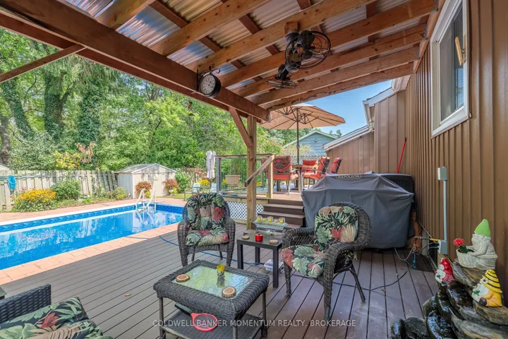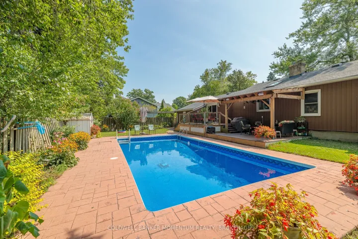 Location! Location! this charming home features a inground pool and attached garage is located in the heart of historical downtown Ridgeway. Just a couple of blocks to banks, trendy eatiers, quaint shops, pharmacies etc. If you are looking for a walkable lifestyle this location cant be beat as it is also just a few minutes from Lake Erie and our beautiful Crystal Beach that offers even more delightful restaurants and unique stores. Enter into a bright Sun Room with a tray ceiling that opens up to a two tiered carefree trex deck that overlooks the pool. The lower deck is covered with a fan and sun shade. Enjoy many happy days with family and friends, whether its just lounging in the pool or enjoying drinks and BBQ with a natural gas hookup. The kitchen has a breakfast bar, newer gas range, skylight and tiled backsplash. The living room is spacious with a wood burning fireplace, hardwood floors and built in shelves. The master bedroom is spacious with ample closet space. There are two other bedrooms and an updated bathroom with a Jacuzzi tub on the main floor. New flooring recently installed in the two larger bedrooms. The basement is partially finished and is currently set up with a rec room area, bonus room and newer bathroom with a walk in shower and a large laundry storage area. Bonus cat house to remain, cat accesses it from the basement window. Pool liner 2024, battery operated pool vacuum 2025. All appliances included even the gas BBQ.