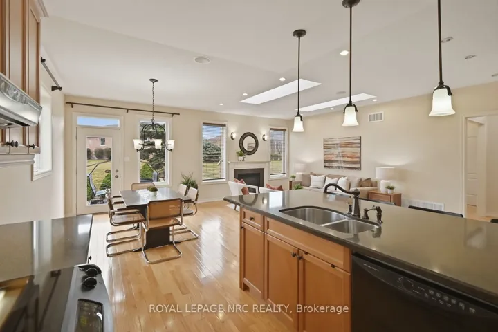 Absolutely wonderful! This end unit townhome was the model home! The upgrades and design are evident the second you pull into the double driveway. From the enchanting curb appeal of the stone work and front patio, to the exquisite interior the quality is impressive. This meticulously maintained end unit rests on a pie shaped lot with plenty of yard space to enjoy your summer months here. This great community has a clubhouse with sweet amenities including an indoor saltwater pool, hot tub, sauna, library, large party room with kitchens, pickle ball courts, tennis courts, and work out facilities. The monthly association fee of $300 covers monitored home security, snow removal all the way to your front door, grass cutting and trimming, and access to the community centre. Your first glimpse inside reveals the extra wide hallway and large foyer. The terrific vaulted ceilings, open concept and wide hallways show off this spacious home. You’ll feel like you are in a detached home with the ease of a townhome. The end unit, of course provides loads of natural light throughout. Two full bathrooms on the main are great for guests. The front bedroom could also be a main floor office or dedicated dining room. Smart hardwoods throughout the main floor for easy cleaning and freshness. The spacious kitchen/great room is an excellent place for entertaining. Appliances included. If more space is what you need for all your hobbies, this lower level with its high ceilings is just what you dreamt about. A rec room with its own gas fireplace and two more bedrooms are a great place for guests. An open bonus office space will keep all your work are out of sight, with yet loads more space in the utility room as well as the furnace room! You won’t feel like you are downsizing here, rather, you can simplify, lock and go, and still have the space you had in your detached home, with the perks of this great community and clubhouse.
