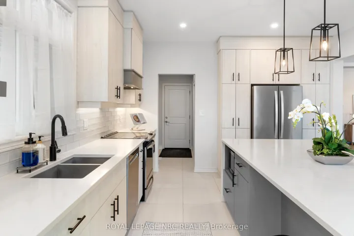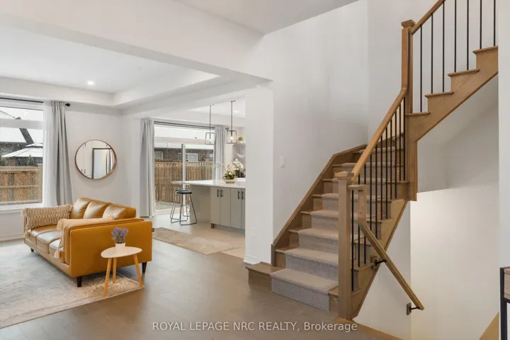 Urban Sophistication designed for modern family living in this 2020 Mountainview Model Home in desirable Saffron Estates. Architecturally designed with efficient, eco-conscious systems, it offers energy-efficient lighting & HVAC systems that astute buyers expect. This 2,300+ sq. ft. home with 3 bedrooms, upper level family room & 2.5 baths creates a calm atmosphere promoted by thoughtful minimalism and effortless function. From the minute you walk in you will appreciate the large windows, 9′ ceilings, and the practical placement of a sitting area with a double coat closet in the entrance along with the convenient powder room. Neutral decor, clean lines & natural light abound in this open-concept space, that separates formal dining, a relaxed living space with a fireplace & a high-end kitchen with all the features you would expect. This kitchen balances style and practicality featuring quartz counters, a ceramic backsplash, a 9′ island with storage & plenty of seating space, stainless steel appliances, a pantry, deep drawers & sliding doors to the rear yard. The mudroom is conveniently located between the kitchen & the garage entrance. Walk upstairs to the versatile upper-level family room that seamlessly balances study and work, family time & relaxation. The primary suite features space for a king sized bed, a walk in closet and a spacious ensuite with double sized glass shower & a vanity with 2 sinks, the other 2 bedrooms share a full 5 piece bathroom with totally separate sink areas & vanities. There is an upper-level walk-in linen closet plus a laundry room perfectly placed for convenience. Situated on a corner lot with a double-wide driveway, fully fenced yard, irrigation system & patio. The new owners will appreciate all the Fonthill area offers: trails, parks, close proximity to shopping, the Meridian Community Centre, wineries, top-ranked schools, & a thriving Downtown area with appealing boutiques & enticing dining establishments.