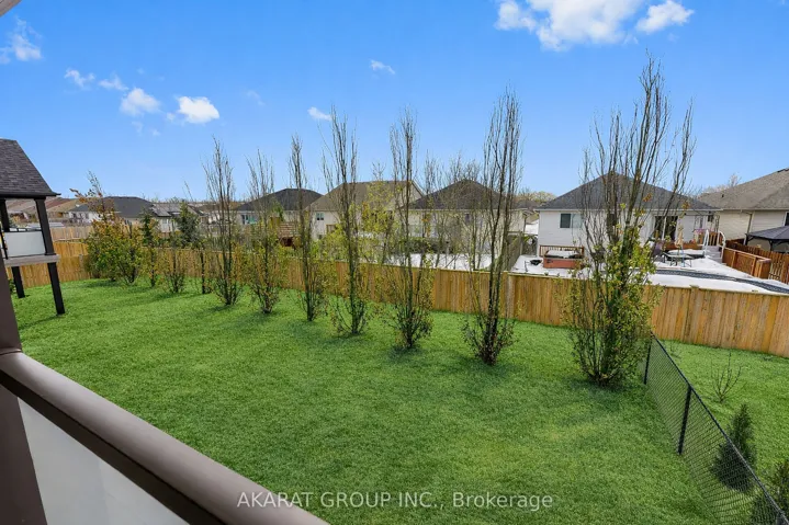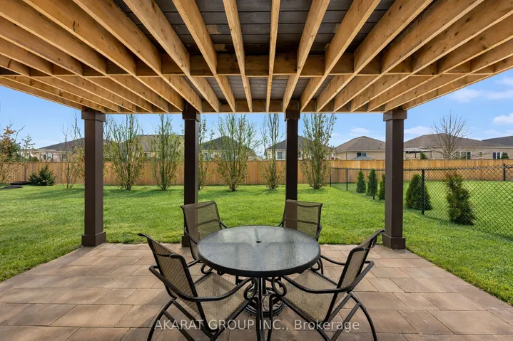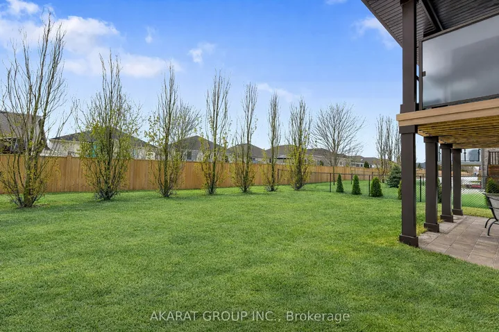 Upgraded and well-kept 4-bedroom detached home + extra bedroom/office and full washroom in the basement, featuring stone and stucco exterior for a modern architectural design, complemented by exterior pot lights that elevate the home’s nighttime presence. Functional layout with exceptional living space throughout. Open-concept main floor with hardwood flooring, a modern kitchen featuring premium Frigidaire Professional appliances, gas stove, soft-close cabinetry, and a bright breakfast area overlooking the backyard through a spacious covered balcony. Large windows provide abundant natural light, while elegant Swarovski crystal chandeliers add a touch of luxury. Central vacuum system installed. The upper level offers well-proportioned bedrooms, all with walk-in closets, along with the convenience of second-floor laundry, ideal for family living.Builder-finished walkout basement designed for entertainment, featuring projector-ready setup with built-in ceiling speakers, a spacious recreation area with walkout to Patio, full washroom with shower, bedroom/office with closet, plus a large mechanical room and ample storage. Equipped with a high-efficiency Carrier HVAC system, HRV system, and tankless water heater (rented) for on-demand hot water. Enjoy a private backyard with covered seating area and a fully synthetic deck/balcony with privacy glass panels and natural gas BBQ connection, perfect for outdoor entertaining. Includes exterior sprinkler system for easy maintenance. Attached garage with parking for 2 vehicles plus driveway for up to 4. Conveniently located minutes from the Welland Sports Complex and Niagara Regional Exhibition Fairgrounds, along with major retailers and amenities including Walmart, Canadian Tire, RONA, LCBO, Mark’s, and Mc Donald’s, offering both convenience and a strong family-friendly location.