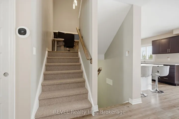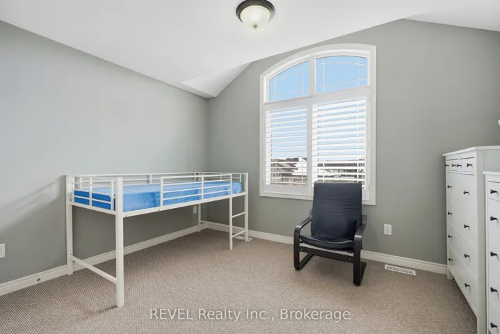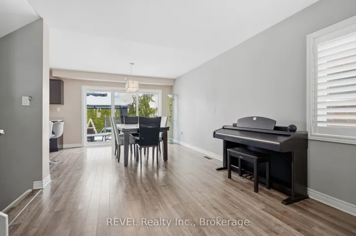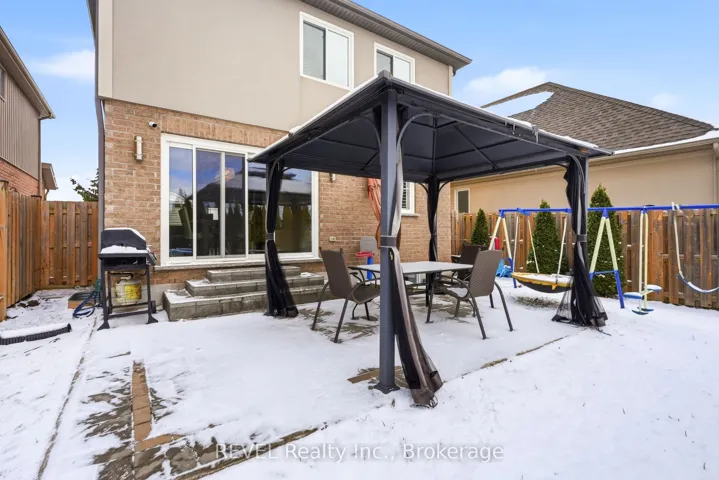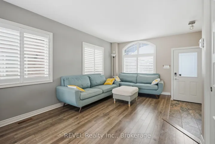 Welcome to 8553 Jennifer Crescent, a masterpiece of modern living built in 2014 by prestigious custom builder Pinewood Homes, offering a rare sanctuary with no rear neighbors. This stunning property immediately captivates with its sophisticated stone and stucco exterior and an elegant interlock driveway. Inside, the open-concept main floor features living room with arched window and elegant California shutters throughout. The heart of the home is a modern kitchen with espresso-toned cabinetry and a mosaic backsplash, flowing seamlessly into a bright dining area. Large patio doors lead to your private backyard retreat, bordered by a dense privacy hedge and featuring an interlock patio under a protective gazebo-the perfect setting for summer relaxation or family fun including play sets and a fire pit. As you head to the second level, you’ll find a clever office nook at the spacious landing, ideal for remote work. The upper floor boasts three spacious bedrooms, including a serene primary suite with a dedicated 3-piece ensuite. A second bedroom impresses with vaulted ceilings and a stunning arched window, while the pristine main bathroom offers extensive cabinetry and modern lighting. Functional elegance continues in the professionally finished basement, a cozy sanctuary anchored by a magnificent floor-to-ceiling cultured stone gas fireplace and a designer laundry center with high-end appliances. Every inch of this home is move-in ready and meticulously maintained. Perfectly located in a premier Niagara Falls enclave, you are within walking distance to top-rated schools, parks and grocery store, with immediate access to Costco, major highways, and championship golf courses.