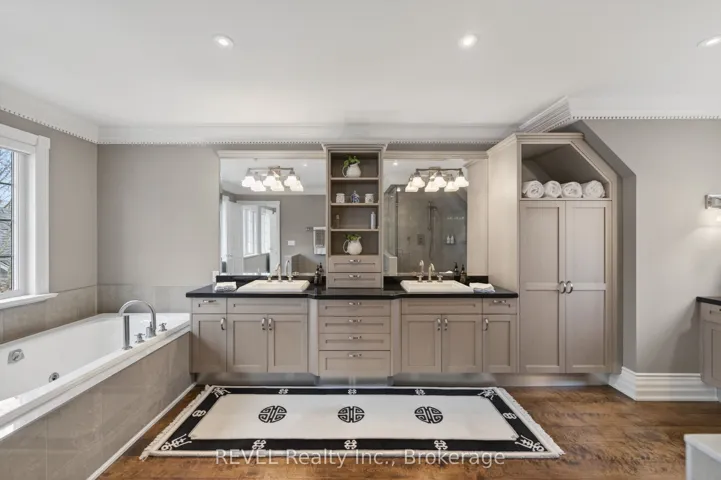Located in Old Town Niagara-on-the-Lake, a setting known for its shops, world class dining, Shaw festival, golf courses and marinas including award winning wineries and vineyards. This exceptional 5-bedroom, 5-bathroom residence offering over-the-top comfort, elegant entertaining spaces, and a private backyard retreat – all within walking distance to Old Town, Community Center and library. Designed for both grand gatherings and quiet relaxation, the home features multiple living areas with six fireplaces, including a warm and inviting living room and an expansive family room with double doors that open seamlessly to the gardens. At the heart of the home is a stunning Irpinia kitchen outfitted with premium Miele appliances, custom cabinetry, abundant storage, and a large island that naturally becomes the centre of conversation. The fully fenced backyard feels like a hidden sanctuary, complete with a lap pool with automatic cover, tranquil pond and waterfall, Japanese red maple, birch trees, and fragrant hydrangeas. Thoughtfully designed landscaping and irrigation make it as practical as it is beautiful. The main floor offers two bedrooms, including an accessible suite with ensuite and garden access, as well as a versatile second space ideal as a bedroom, studio, or retreat. Upstairs the grand staircase, the primary suite is a private haven featuring a sitting area with fireplace, balcony overlooking the yard, expansive walk-in closet, and a luxurious spa-inspired ensuite, alongside a additional bedroom with ensuite. The lower level adds even more living space with a cozy media room, additional bedroom or gym, sauna, wine cellar, and a beautifully appointed laundry room. Complete with a double car garage and updated mechanicals, this is a rare opportunity to own a home that blends sophistication, functionality, and resort-style living in one remarkable package.