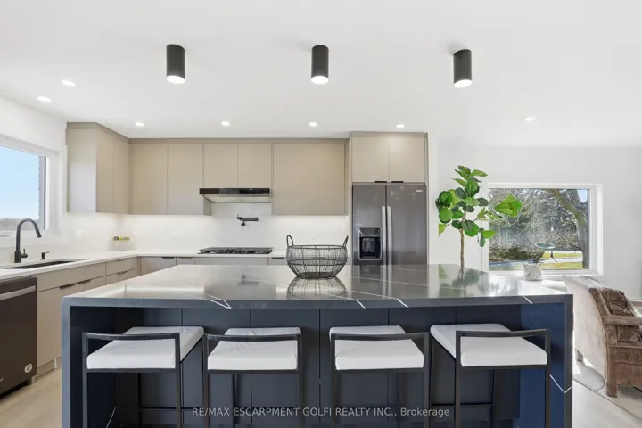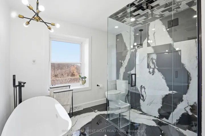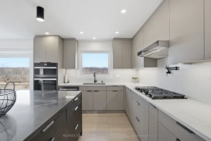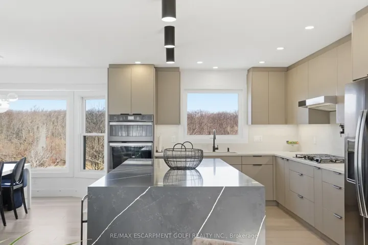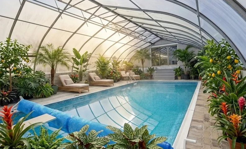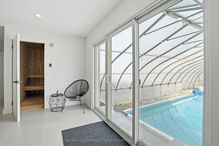 Welcome to 296 Ridge Rd W, perfectly positioned between Fifty Rd & Mountain Rd in one of Grimsby’s most coveted escarpment locations. Set on ~2.5 acres backing onto the Bruce Trail with sweeping views toward Lake Ontario, this extensively renovated (since 2019) luxury retreat is the lifestyle buyers wait years to find. Featuring 5 bedrooms all on one level, this home is designed for families who value space, comfort & function. The stunning 2021 kitchen impresses with quartz countertops, custom cabinetry, new appliances & a statement island, complemented by a designer coffee bar with wine cooler & full-height backsplash. Engineered hardwood flows throughout, while spa-inspired bathrooms offer porcelain tile & double vanities. The finished basement (2022) elevates everyday living with a bar, 3pc bath, laundry & 4-person sauna. Imagine year-round enjoyment in the enclosed indoor pool-your private resort-perfectly paired with the sauna for all-season relaxation. Step outside and picture summer nights on the new deck (2023), open green space perfect for hobby farm potential, and winter days turning your backyard into a private skating rink. With updated windows/doors (2022), new front door, exterior paint (2023), pool liner (2024), heater/filter & new water pump (2026), this is a rare turnkey opportunity you won’t want to miss. Luxury Certified.