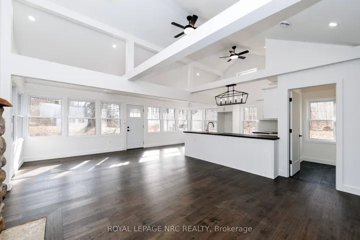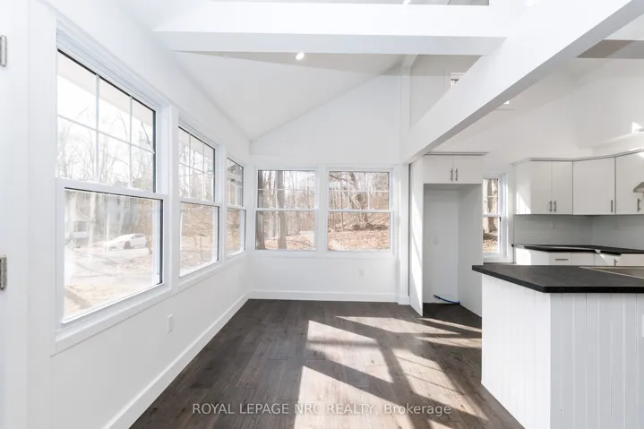Tucked away in Sherkston, this fully updated and winterized home offers a quiet, up north feel while still being just minutes from the beach and local amenities. Inside, the open concept layout features vaulted ceilings with exposed beams and plenty of natural light. Hardwood flooring runs throughout, creating a warm and consistent feel. The space is well suited for both everyday living and entertaining. The kitchen has been updated with ample cabinetry and a large island. A separate laundry and mudroom adds to the overall functionality of the home. A stone fireplace serves as a central feature in the living area, adding character and a cozy atmosphere. Surrounded by mature trees, the property offers a private setting while remaining close to Lake Erie, beaches, and the amenities of Sherkston. Exterior soffit puck lighting enhances the home’s curb appeal and provides added lighting. Suitable for full time living, a weekend retreat, or investment purposes, this property offers a versatile opportunity in a desirable location.