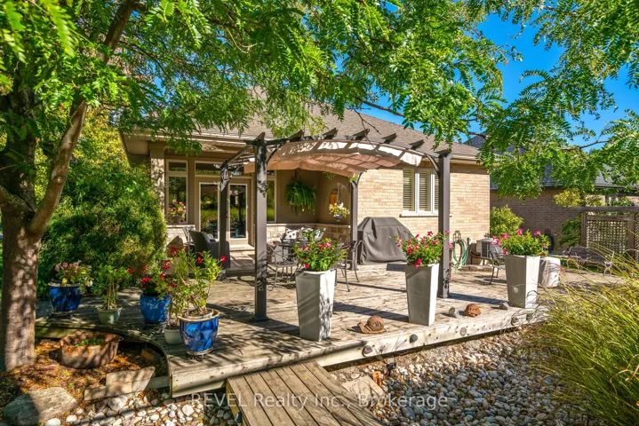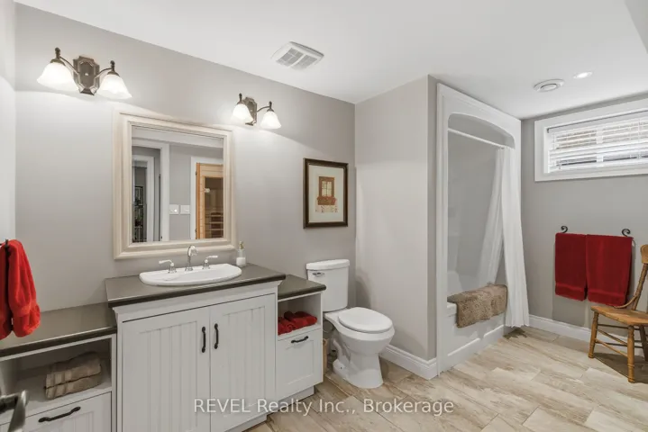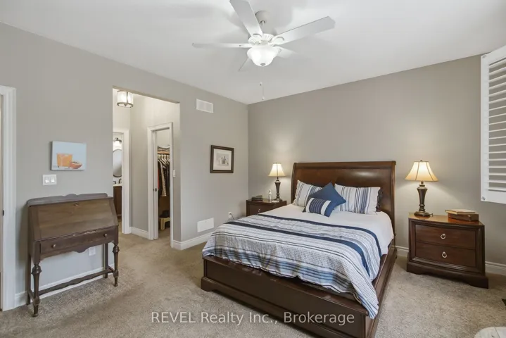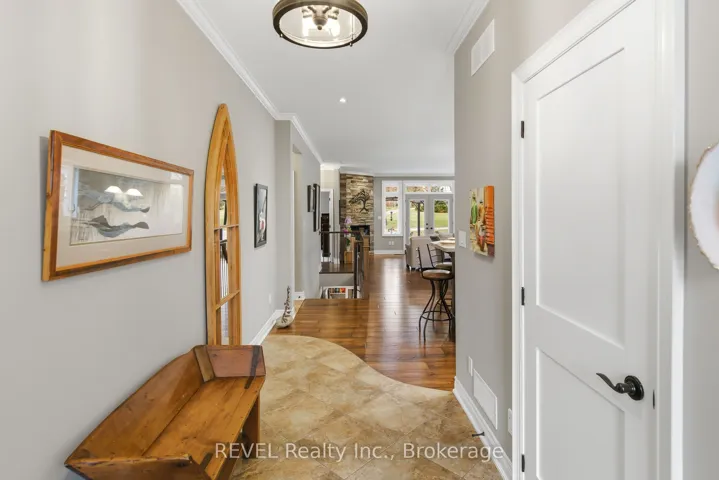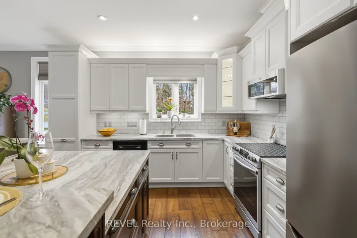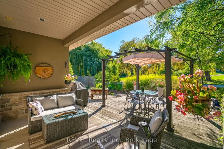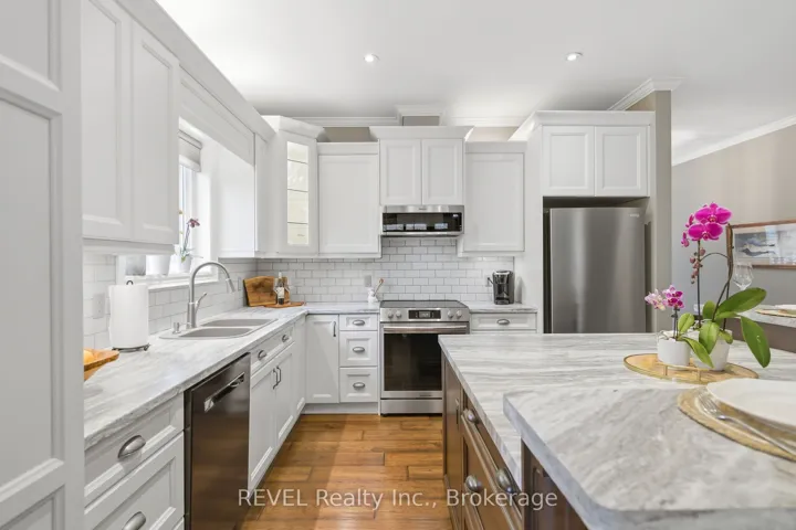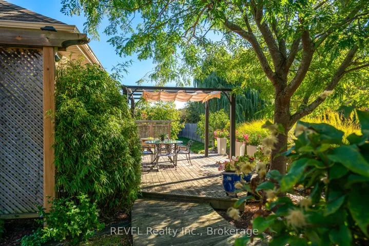 This stunning custom-built bungalow boasts 3 bedrooms, 3 full bathrooms, a tastefully designed finished basement and approximately 2500 square feet of total living space. Perfectly positioned on a generous corner lot, this home offers enhanced privacy, and scenic views on a quiet street. Nestled in the desirable town of St.Davids, this coveted neighbourhood of Niagara-on-the-Lake is the epitome of wine country living and convenience. Stroll to award winning wineries, renowned restaurants, boutiques and cozy cafes. The open concept main floor offers 2 bedrooms, 2 full bathrooms with heated floors, 9 foot ceilings, gas fireplace with stone feature wall, Phantom screen, French doors leading to backyard, an abundance of windows for ample natural light, crown moulding, upgraded baseboards and trim and an additional laundry hook-up. The spacious main floor primary suite is a serene retreat, featuring a large walk-in closet and a spa-like ensuite with heated floors, double sinks and an oversized shower. Recent updates include wide plank engineered hardwood, updated countertops and kitchen cabinetry (w Lee Valley double sided pantry), an oversized 71″ island.. Additional living space continues in the basement with 8 foot ceilings & upgraded trim, a spacious guest bedroom with adjacent full bath with infrared sauna. The entertainer’s dream rec room includes a gas fireplace with built-in cabinetry and shelving, built-in speakers, pool table and workshop. Plenty of space and comfort for you and your guests. Outdoor living shines with a covered porch, expansive deck, and stone patio- perfect for your morning coffee, or sunset dinners with friends and family. Completing the backyard is a storage shed, and opportunity awaits to create a large vegetable garden with south-western exposure. For added convenience you will enjoy the central vac, automatic garage door openers with remotes, a newer furnace (2020), new stove and fridge (2024), and above the range microwave (2020).
