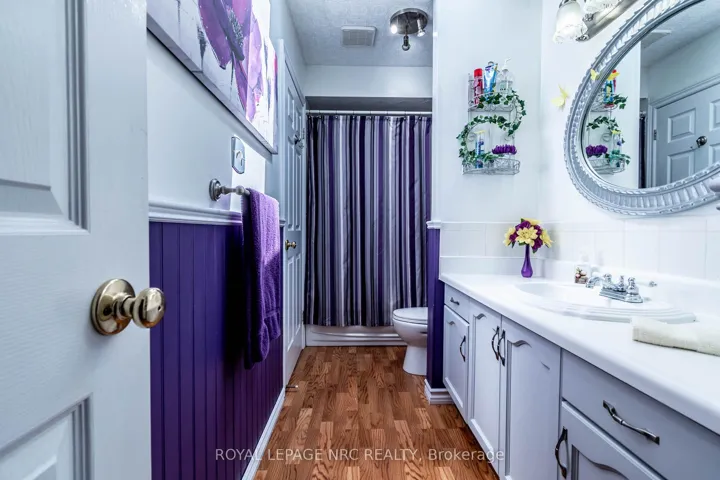 Welcome to 31 Rollins Drive. This 4 level all brick backsplit is centrally situated in North Welland & backs onto greenspace with no rear neighbours! A lovingly landscaped front garden & interlocking brick driveway guide you to the front porch of this meticulously maintained 3 bedroom home boasting +1400 livable sqft. First level features a convenient main floor layout with hardwood flooring throughout & an open concept living room with large bay window that allows plenty of natural light. This floor also features a spacious private dining room, bright eat-in kitchen with skylight/lots of cabinets, & side door access onto private fully fenced backyard with interlocking brick walkway. Second level has 3 generous sized bedrooms including oversized master bedroom with 4 piece en-suite bathtub jacuzzi + skylight, & walk-in closet/ceiling fan. Fully finished lower level contains massive rec room/home office with tiled cozy electric fireplace & 3 large windows. Lower level basement also fully equipped with mini-kitchenette, 3 piece bath with standing shower, & laundry/utility room. This additional living space is ideal for an in-law suite, guests, or growing family. Attached garage with inside entry and man door access onto very private immaculately landscaped backyard complete with 10×12 sunroom & storage shed (both with hydro) The perfect spot for those who like to tinker or simply relax after a long day. Additional Upgrades: Furnace/AC (2024) B.I. Microwave (2024) Roof (2016) Kitchen & Bathroom Skylights (2016) Nearby Amenities: QEW/406/Niagara College/shopping/schools/golf. Excellent opportunity to join an established neighbourhood in North Welland!