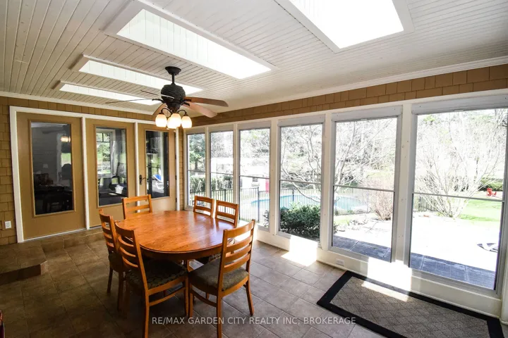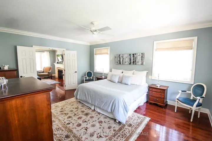 Welcome to this custom-built bungaloft set on a picturesque 1.15-acre property in Ridgeville Pelham. Backing directly onto a vineyard and surrounded by mature trees, this home offers exceptional privacy and sweeping views of Niagara’s rolling countryside. With over 4800 sq ft of living space, this detached home features 5 bedrooms and 5 bathrooms, including the rare advantage of 4 bedrooms with their own private ensuites-ideal for families, guests, or multi-generational living. Inside, 9-foot ceilings, crown molding, and hardwood flooring throughout the main and second levels enhance the sense of space and craftsmanship. The versatile bungaloft layout offers a main-floor primary suite. The kitchen is a chef’s delight, equipped with built-in appliances and provides convenient access to the front porch. A walk-in pantry off the mudroom adds everyday functionality and storage. All bathrooms are finished with glass shower enclosures, while the primary ensuite features a spa-inspired built-in Japanese soaker tub surrounded by tile for a clean, refined finish. A bright three-season room at the rear of the home offers full views of the pool and rolling hills beyond an ideal space to relax and enjoy the landscape in comfort. The home is further enhanced by three fireplaces, including one wood-burning and two gas fireplaces, creating warm and inviting living spaces throughout. The fully finished walk-out lower level includes two bedrooms and opens directly to a private backyard oasis featuring a heated in-ground pool. Beyond the pool, the expansive yard includes a large fire pit area, perfect for gathering under the stars and enjoying. Car enthusiasts and hobbyists will appreciate the oversized attached two-car garage along with a detached, heated two-car garage-perfect for a workshop, studio, or personal retreat. Set in a sought-after rural setting, this property offers a rare combination of space, privacy, and lifestyle just minutes from town amenities.