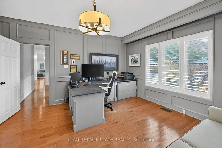 Executive Niagara Escarpment Home with Inground Pool & Full In-Law Suite – Located on a quiet cul-de-sac in one of Grimsby’s most desirable neighbourhoods and walking distance to downtown, this exceptional home offers over 4,500 sq. ft. of finished space and more than 110′ of Escarpment frontage. With an inground pool, stunning natural views, and a fully self-contained in-law suite, this is a rare opportunity. The main floor features a spacious foyer, formal dining and living rooms, a large office overlooking the backyard, and a spectacular Muskoka-inspired family room with wall-to-wall windows, cathedral ceilings, custom built-ins, and a fireplace. The family room flows into the dining area and a well-appointed kitchen with extended-height cabinetry, granite counters, stainless steel appliances, a desk nook, and walk-in pantry. A powder room and laundry with backyard access complete this level. Upstairs, the primary suite offers outstanding Escarpment views, a 5-piece ensuite with soaker tub and glass shower, and a walk-in closet with custom organizers. Three additional bedrooms share a 5-piece bath. The former 3-car garage has been converted into a full in-law suite with open-concept kitchen/living area, 3-piece bath, and bedroom, plus a ventilated storage bay. Through the remaining garage bay is a spacious mudroom leading to the lower level with a rec room, guest area, and 3-piece bath-ideal as a games room, gym, or potential second in-law suite. The backyard, fully nestled into the Niagara Escarpment, offers exceptional privacy with an inground pool, multiple seating areas, gazebo, and a refreshed pool house with covered overhang. A rare blend of luxury, versatility, and natural beauty.