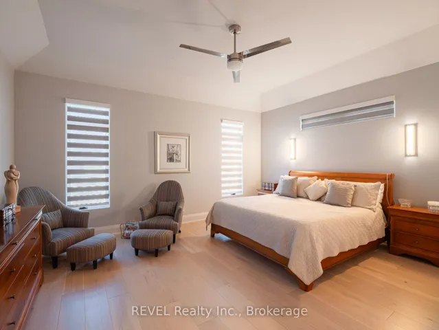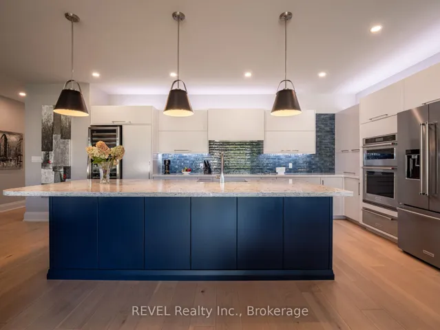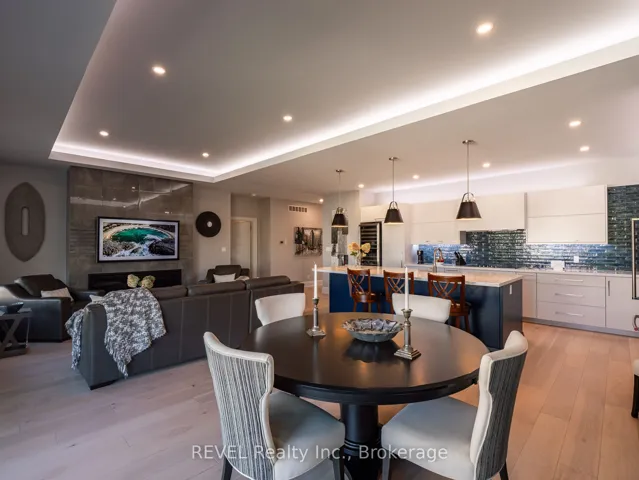 Welcome to this stunning custom-built bungalow nestled on an exclusive cul-de-sac of only 9 homes in the heart of St. David’s, one of Niagara-on-the-Lake’s most coveted communities. Blending sophisticated architecture with contemporary comfort, this home offers the perfect balance of elegance and lifestyle.Step inside to discover a bright open-concept design highlighted by soaring ceilings, designer lighting, and expansive windows that flood the space with natural light. The gourmet kitchen features premium appliances, quartz surfaces, and a stylish centre island-perfect for entertaining or everyday family gatherings. The adjoining dining and great room spaces flow seamlessly to a covered terrace, ideal for enjoying Niagara’s picturesque sunsets.The main floor offers two spacious bedrooms, including a serene primary suite with a spa inspired ensuite bath, freestanding tub, glass shower, and dual vanities. The walkout lower level expands the living space with two additional bedrooms, a full bath, and an impressive golf simulator and theatre room, perfect for year-round recreation and relaxation.Outside, thoughtful landscaping, a double garage with modern doors, and clean architectural lines create exceptional curb appeal.Located just steps from The Grist restaurant and minutes from Niagara’s finest wineries, golf courses, trails, and Old Town’s boutique charm, this property embodies the Niagara-on-the-Lake lifestyle-a perfect blend of luxury, leisure, and location. More than a home, this is a lifestyle statement.