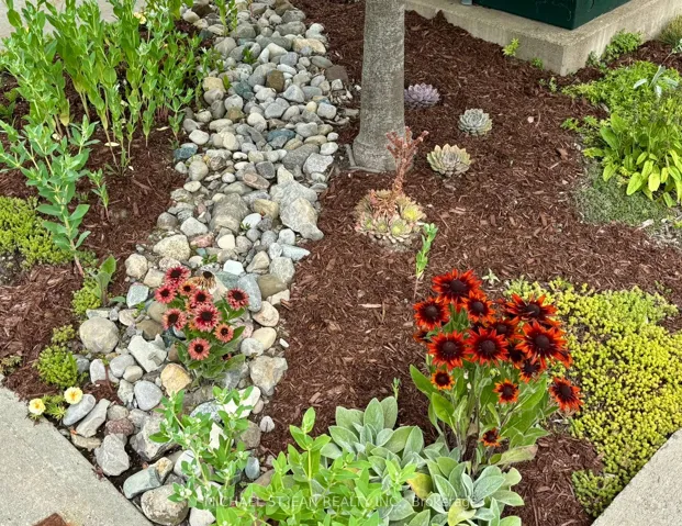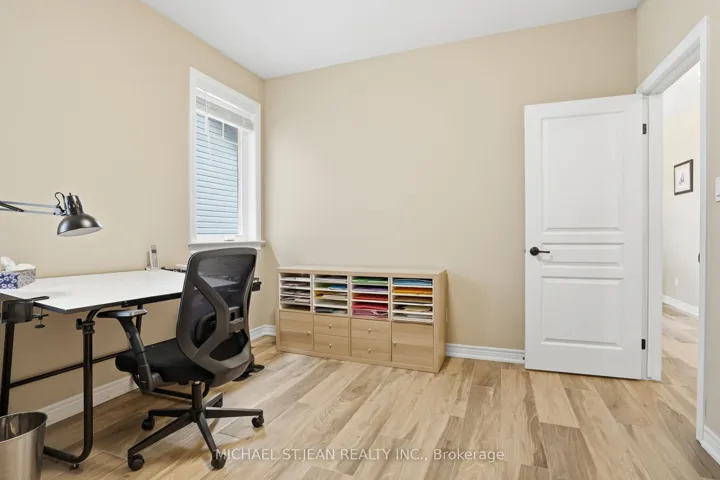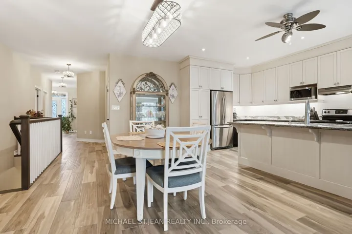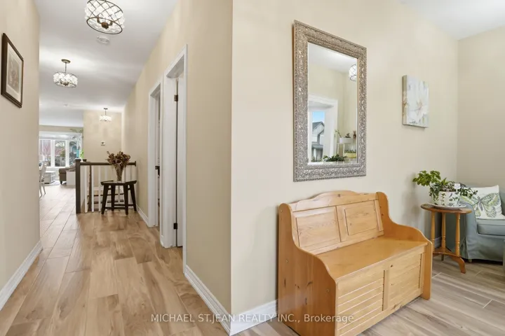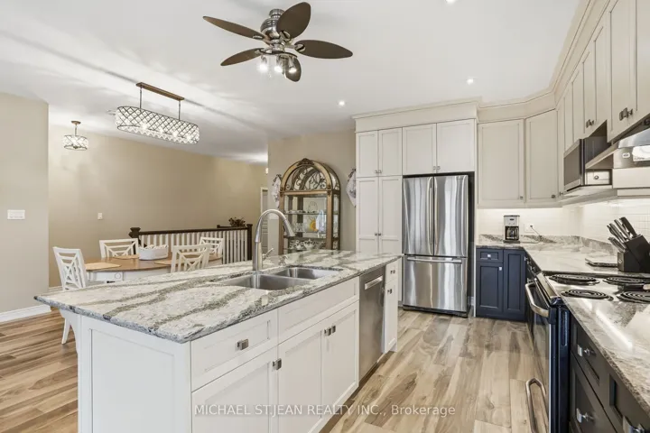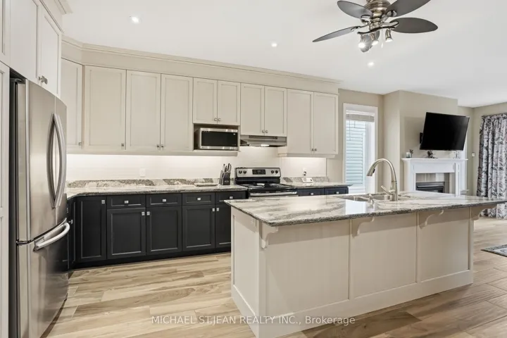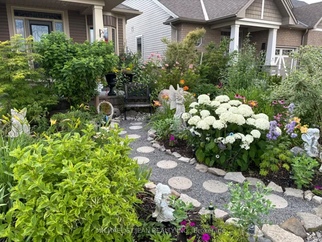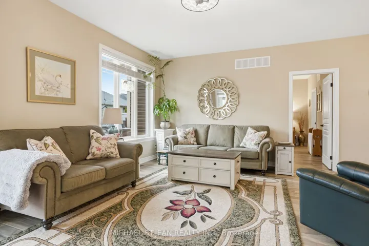 Experience refined modern living at 104 Anastasia Boulevard in Smithville. Constructed in 2017 and thoughtfully enhanced with over $120,000 in premium upgrades since its acquisition in December of that year, this exceptional bungalow offers a seamless blend of contemporary design and everyday functionality. The expansive 1,727 sqft. main level is distinguished by 9-foot ceilings, creating a bright and welcoming atmosphere throughout. At its heart lies an open-concept living space anchored by a chef-inspired kitchen, complete with Cambria quartz countertops, floor-to-ceiling cabinetry with elegant decorative detailing, a central island, pantry, and soft-close drawers and cupboards. Sophisticated ceramic plank flooring extends across the entire main floor, ensuring a carpet-free interior, while both main-floor bathrooms-including the luxurious five-piece ensuite off the primary bedroom-feature matching Cambria quartz finishes. The professionally finished lower level offers approximately 613 sqft of finished space including a generously sized bedroom with large egress windows that invite abundant natural light, along with a stylish three-piece bathroom-ideal for guests, extended family, or a private home office. An additional 1,100 sqft. of unfinished space presents a rare opportunity to create a custom living area, fitness studio, or additional storage tailored to your needs. Outdoors, the property is equally impressive. The front and rear perennial gardens have garnered notable attention, having been featured in multiple publications and nominated for an award in September 2025. Inside, the seller has added thoughtful touches, including the conversion of the entry closet into an inviting reading nook or sitting area, complemented by a beautiful bay window that frames picturesque views of the meticulously landscaped front garden.