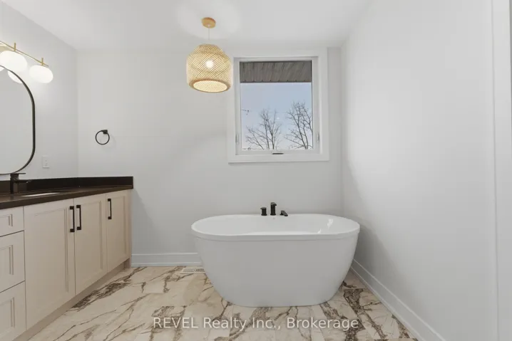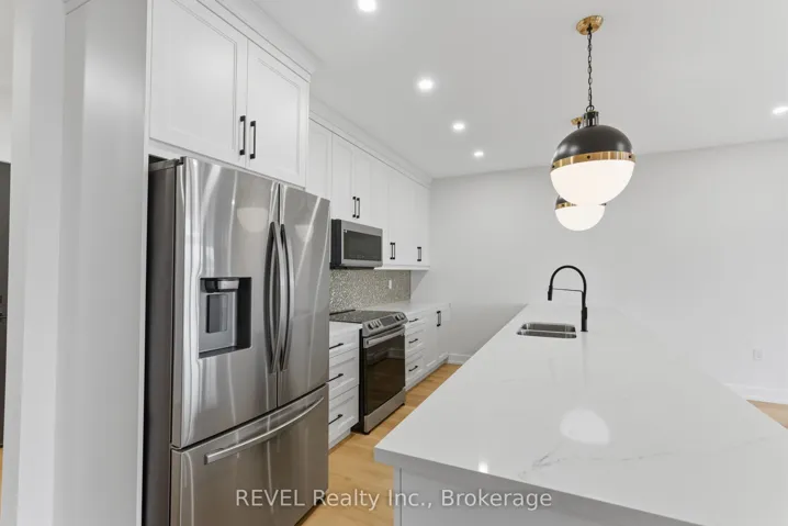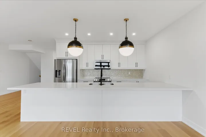 Beautifully finished freehold townhouse offering 3 bedrooms and 2.5 bathrooms in one of Fonthill’s most sought-after communities. Designed for modern living with a functional layout, quality finishes, and convenient access to local amenities.The main floor features 9 ft ceilings and an open-concept layout with large windows providing excellent natural light. The kitchen is well-appointed with quartz countertops, a large island, floor-to-ceiling soft-close cabinetry, stainless steel double sink, and Riobel dual-spray faucet. The living and dining area includes LED pot lighting and direct access to a covered deck through sliding doors, creating an easy indoor-outdoor flow.A mudroom with garage access and a 2-piece powder room complete the main level.The second floor offers a spacious primary bedroom with walk-in closet and a 5-piece ensuite featuring a double vanity, freestanding soaker tub, and tiled shower. Two additional bedrooms share a 4-piece bathroom with double vanity and Mirolin tub/shower combination. Convenient second-floor laundry includes a sink and additional storage.The unfinished walkout basement provides excellent potential for additional living space, with natural light and access to a covered patio. Located close to parks, walking trails, schools, shopping, dining and 406, this home offers a strong combination of layout, finish, and location.