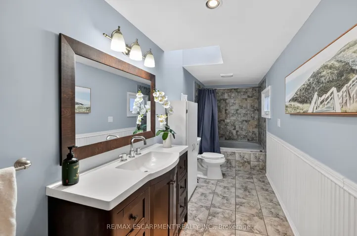 MULTI-GENERATIONAL LIVING … Character, space & versatility come together at 287 Main St E in Grimsby, a charming 2-storey (legal duplex) home offering thoughtfully designed living across 2,874+ sq ft on a generous 54′ x 164′ property w/POOL & mature trees. Ideal for extended families or those seeking flexible living arrangements or potential income, this home provides distinct yet connected spaces for everyday comfort. The BEAUTIFULLY UPDATED main level blends classic charm w/modern function. Welcoming 3-season/mud Rm leads into a bright liv Rm featuring engineered hdwd flooring, large windows, crown moulding & electric fireplace. Approx. 10′ ceilings & original trim preserve the timeless character of this CENTURY HOME. The spacious dining/great room is perfect for family gatherings, while a large 4-pc bath w/skylight adds natural light. Kitchen offers vinyl flooring, accent wall & access to bsmt. Just beyond, a versatile fam Rm (or bed Rm) sits alongside the MF primary bed Rm w/WALK-IN closet. Patio doors lead to composite deck connecting to an upper deck overlooking fully fenced yard, patio area & AG POOL. Private upper-level is ideal for extended family or independent living. This space features a large primary bed Rm w/WALK-IN closet (currently a liv Rm), add’l bed Rm, third bed Rm (currently sitting room) & 4-pc bath. A retro VINTAGE kitchen w/island & dining area adds charm, complete w/window overlooking deck. FULLY FIN’D LOWER LEVEL offers additional living flexibility w/SEPARATE ENTRY, O/C living area, full kitchen w/potlights, 3-pc bath w/updated shower, laundry access, spacious bed Rm & WALK-UP to exterior – perfect for in-laws, adult children, guests, or growing families. Mechanical highlights include 2 metres, owned furnace & A/C, reinsulated attic, roof & eaves (approx. 2013), mostly newer windows & bsmt utility/storage w/second 100-amp panel. Conveniently located close to schools, hospital & HWY access. CLICK ON MULTIMEDIA for virtual tour, floor plans & more.