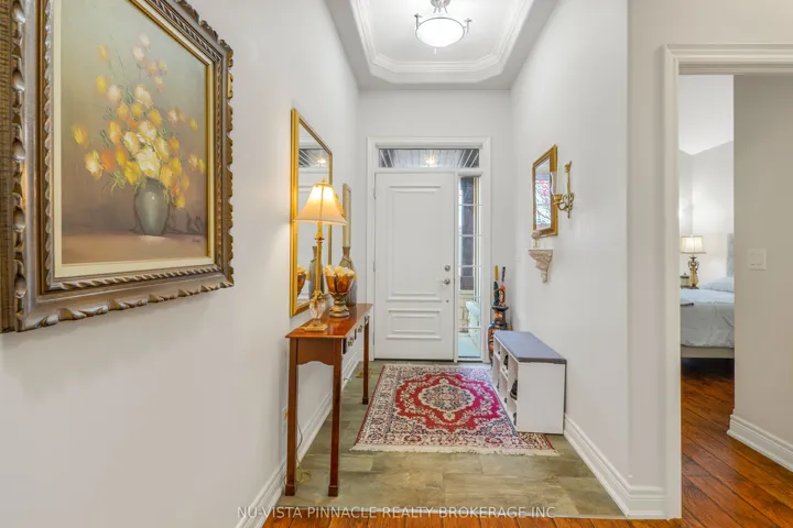 Welcome to this elegant bungalow townhome located in the prestigious Harvest Creek community in the charming town of St. David’s. Nestled among mature trees and just minutes from world-class wineries, breweries, scenic walking trails, boutique shopping, tennis courts, playgrounds, schools, and the historic Old Town of Niagara-on-the-Lake, this residence offers the perfect blend of tranquility and convenience with easy access to the QEW and U.S. border. Inside, the home features an open-concept layout with soaring cathedral ceilings, gleaming hardwood and tile floors, and a spacious great room highlighted by a cozy gas fireplace. The gourmet kitchen with granite countertops flows seamlessly into the dining and living areas, while the main floor also includes two generous bedrooms. The luxurious primary suite boasts a tray ceiling, walk-in closet, and spa-inspired ensuite with a glass and tile shower, creating a private retreat. The fully finished walkout basement is a true extension of the living space, complete with heated cement floors, large windows that flood the area with natural light, an additional bedroom and bathroom, and ample storage throughout. Sliding doors lead to a beautifully tiled wood and cement patio overlooking a serene wooded area and stream, while a composite deck and covered terrace provide year-round enjoyment. Additional highlights include a spacious double-car garage, central vac, a partially finished furnace and storage room, and premium finishes throughout. Whether you are downsizing, investing, or simply seeking a peaceful lifestyle, this home is a rare gem in one of Niagara’s most desirable locations.