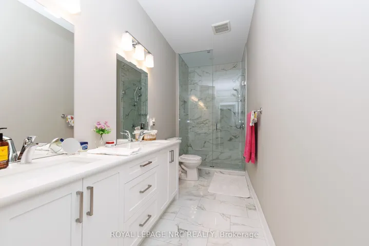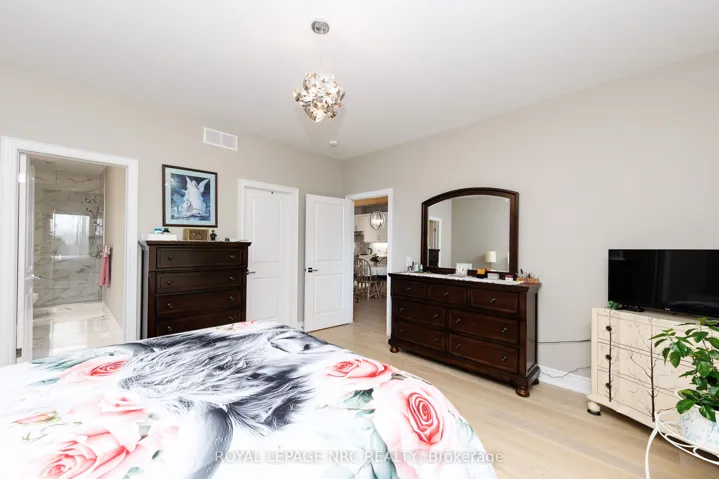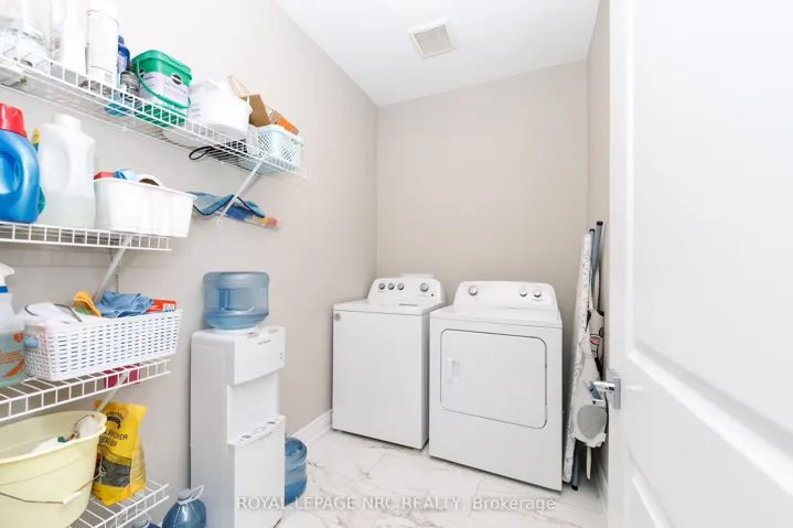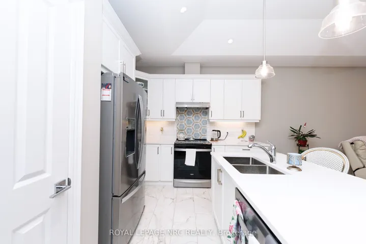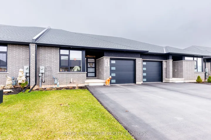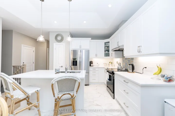 Welcome to this beautifully maintained 4-year-old freehold bungalow townhouse in the sought-after Towns of Village Creek Estates with no rear neighbors for added privacy. This home features 2 spacious bedrooms and 2 full bathrooms, along with the convenience of main floor laundry. The bright, open-concept layout is enhanced by 9′ ceilings and an elegant tray ceiling in the main living area. The modern kitchen is sure to impress with ample custom cabinets, quartz countertops, stylish backsplash, under-cabinet lighting, and a functional breakfast bar island-ideal for both everyday living and entertaining. The spacious great room boasts a cozy gas fireplace and a garden door that leads to a covered patio. Retreat to the primary bedroom featuring a large walk-in closet and a private ensuite complete with double vanity and a tiled glass shower. A second bedroom and additional full bathroom provide flexibility for guests or a home office. The unfinished basement offers incredible potential, already framed for a recreation room and bedroom, with a 3-piece bathroom rough-in and a 4 ft acrylic shower in place-making it easy to customize to your needs. Located in a quiet, friendly neighborhood, this home is within walking distance to the Stevensville Conservation Area and local shops, with quick access to the QEW for commuters. Experience peaceful living in the heart of Stevensville’s Village Creek Estates-this is one you won’t want to miss!