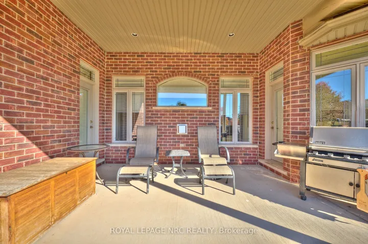ISN’T IT TIME FOR A BUNGALOW? Built by Mabo Westside Construction Ltd., this former Linden model bungalow offers timeless quality, elegant design, and beautiful curb appeal with its combination of brick, stone, and stucco finishes.Featuring an oversized double garage and an impressive 1,200 () sq. ft. covered patio accessible from both the kitchen dinette and the primary bedroom-perfect for entertaining family and friends or simply enjoying a peaceful evening under the stars.With just shy of 2,300 sq. ft. above grade plus approximately 1,000 sq. ft. of finished space below, this home offers versatility and comfort for today’s lifestyle.Step inside to soaring 9- and 10-foot ceilings, a welcoming foyer with striking curved wall and wrought-iron railing, and a spacious Great Room featuring a detailed cove ceiling, pot lighting, a centre gas fireplace, and immaculate maple hardwood floors.The chef’s kitchen boasts quartz countertops, a tumbled marble backsplash, and a bright dinette overlooking the fully fenced backyard. A formal dining room sets the stage for special gatherings, while a front flex room easily serves as a home office, den, or extra bedroom.Down the hall, discover another generous bedroom, a full 4-piece bath, and the primary retreat tucked privately at the back of the home with a 4-piece ensuite featuring a walk-in glass shower. Main-floor laundry with garage access adds convenience.Downstairs, take the party to the fully finished lower level with in-floor heating, a wet bar with seating for four, a corner gas fireplace, and a projector with automatic 92″ screen and 8 built-in speakers-the ultimate entertainment space! A fourth bedroom, 3-piece bath, and three large storage rooms complete this impressive lower level.Rounded corners, quality finishes, and attention to detail throughout make this home truly special-set in one of Fonthill’s most desirable neighbourhoods.