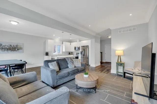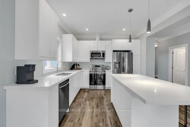 Step into style and sophistication in this stunning sun-filled Custom Built detached home, nestled in one of Thorold’s most desirable neighborhoods. Offering over 2,000 sq.ft. of beautifully designed living space, this home blends modern luxury with everyday comfort. Boasting 3 massive bedrooms (Geowarehouse lists 4, highlighting their incredible size) and 3 bathrooms, every inch of this home is thoughtfully designed. Soaring ceilings, oversized doors, crown moulding in the living area, and an open-concept layout create an airy, upscale feel throughout. The chef-inspired kitchen, complete with quartz countertops, sleek flat-front cabinetry, stainless steel appliances, and a large eat-in island flows seamlessly into the dining area with a sliding door to the backyard. Upstairs, enjoy the convenience of a walk-in laundry room, while each bedroom impresses with its own very large walk-in closet, offering exceptional storage and functionality. A beautiful oak and spindle staircase connects the floors, adding timeless architectural charm. The unspoiled basement with separate entrance and high ceilings presents incredible potential-finish to suit your lifestyle. Step outside to a fully fenced backyard oasis, complete with a patio space perfect for relaxing or entertaining in total privacy. The stamped concrete driveway wrapping around both sides of the home creates standout curb appeal you won’t forget. Enjoy added peace of mind with established neighbouring homes on both sides – no nearby construction to distrupt your daily living. This is more than just a home – it’s a lifestyle upgrade.