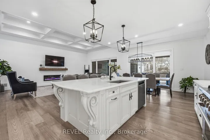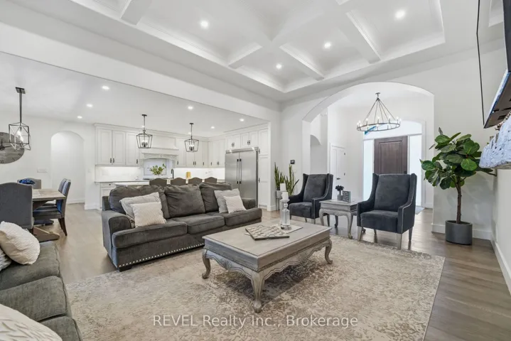 Set within one of the area’s most prestigious established communities, this custom-built stone bungalow delivers the kind of luxury, scale, and lifestyle that rarely comes to market. Offering 2,448 sq ft of beautifully finished main floor living, plus an expansive walk-out lower level intentionally left unfinished, this exceptional residence offers immediate enjoyment with the rare opportunity to create a custom lower level tailored to your vision. A grand front foyer welcomes you into a stunning open-concept design where timeless finishes and thoughtful craftsmanship shine. The chef-inspired kitchen is a true showpiece, featuring quartz countertops, a large island with bar seating and built-in dishwasher, Professional Series appliances, and a walk-in pantry complete with prep sink, wine cooler, and additional storage. Engineered hardwood and ceramic tile flooring flow throughout the main level, while the living room is elevated by a coffered ceiling and elegant electric fireplace. The dining area opens seamlessly to the rear deck, creating effortless indoor-outdoor flow. The spacious primary suite is a private retreat with walk-in closet and a beautifully finished 4-piece ensuite with oversized tiled walk-in shower. Two additional bedrooms share a stylish 3-piece bath, while a main floor powder room adds convenience for guests. Outdoor living is equally impressive with a covered rear porch featuring composite decking and gas BBQ hookup, a vaulted 3-season sunroom by Outdoor Living Designs, professionally landscaped grounds with interlocking stone walkways and patios, in-ground sprinkler system, exterior lighting, and a private hot tub area. An oversized double garage adds both practicality and presence. Moments from wineries, fine dining, boutique shopping, the QEW, and the Lewiston-Queenston Bridge, this is a rare opportunity to own a luxury bungalow in a coveted enclave of distinguished homes. Refined, timeless, and designed for the buyer who expects more.