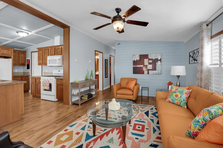 BRIGHT & SPACIOUS BUNGALOW … Welcome to 107-3033 Townline Road (107 Tamarack Ave), nestled in the heart of Stevensville’s vibrant and welcoming adult lifestyle community – a perfect blend of comfort, convenience, and carefree living. This beautifully maintained 3-bedroom, 2-bathroom home offers 1284 sq ft of thoughtfully designed space that’s ideal for those seeking a relaxed and active lifestyle. Step inside to find a bright, OPEN CONCEPT layout featuring vaulted ceilings and California shutters throughout, a spacious living room with lovely accent wall, and flows seamlessly into the dining area and well-equipped kitchen – complete with a breakfast bar island, gas stove, and built-in microwave. The spacious primary suite is a private retreat with a WALK-IN CLOSET and ensuite bath featuring a WALK-IN SHOWER. Two additional bedrooms, a second full 4-pc bath, and a large linen closet offer plenty of room for guests or hobbies. Outside, enjoy your morning coffee on the covered front deck or unwind on the covered side deck with direct access from the laundry room. A walkway leads to a charming STAMPED CONCRETE patio beside the garden shed, perfect for enjoying the outdoors, and continues all the way out front to the double wide stamped concrete driveway (2022). Additional features include leaf filter gutter protection (2021) and a welcoming low-maintenance exterior. Living here means more than just a beautiful home; it’s a lifestyle. Enjoy full access to the community’s incredible amenities: indoor/outdoor pools, sauna, clubhouse, shuffleboard, tennis/pickleball courts, fitness classes, and an active calendar of social events. If you’re ready for low-maintenance living in a close-knit community that offers both peace and activity, this is your opportunity. Monthly Fees $1131.47 ($850.00 Land Lease + $281.47 Estimated Taxes). CLICK ON MULTIMEDIA for virtual tour, drone photos & more.